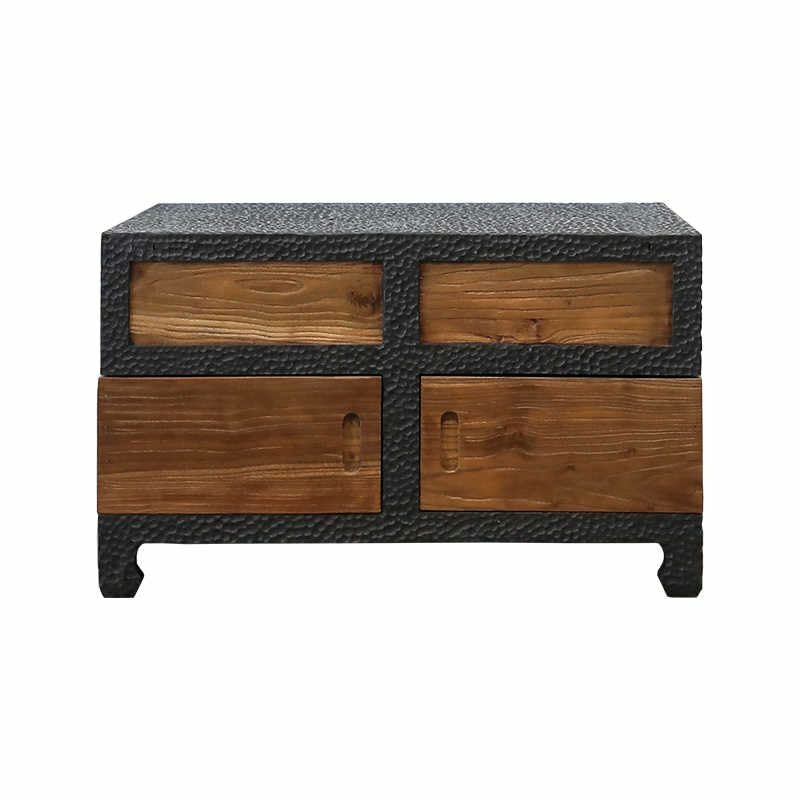 Transform your living space with this exquisite Contemporary Square Coffee Table that embodies Japanese wabi-sabi design principles. The striking 31.5-inch square table features a textured black frame complemented by weathered solid wood drawer fronts, each displaying unique grain patterns and natural character marks. Standing 18.9 inches tall, this sophisticated piece balances visual intrigue with practical functionality through four smooth-sliding storage compartments perfect for organizing living room essentials. The thoughtfully crafted design celebrates the beauty of imperfection, where the interplay between the heavily textured frame and natural wood elements creates a compelling focal point. Each table tells its own story through distinctive wood variations, making it an ideal centerpiece for contemporary homes, meditation spaces, or boutique settings seeking furniture with authentic character. The robust construction and considered proportions ensure this table serves both as a practical surface and an artistic statement piece that grows more distinctive with time.