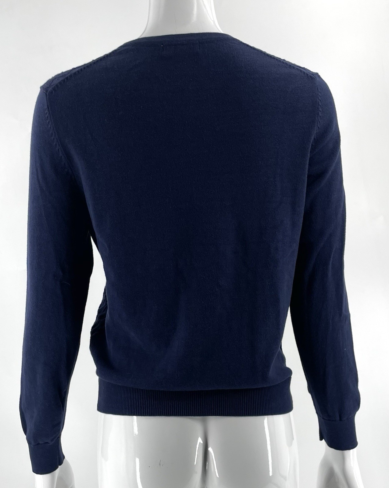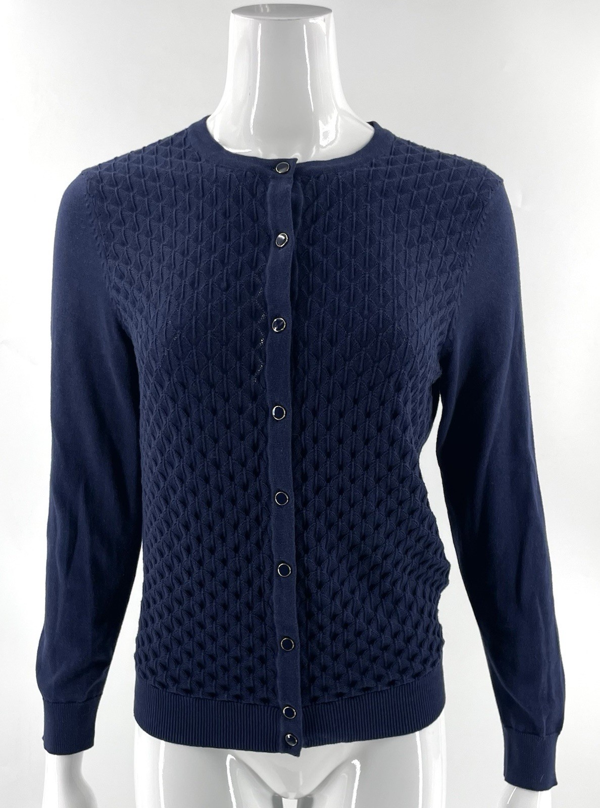 Charter Club Cardigan Sweater Size Large Petite Pointelle Textured Navy Blue