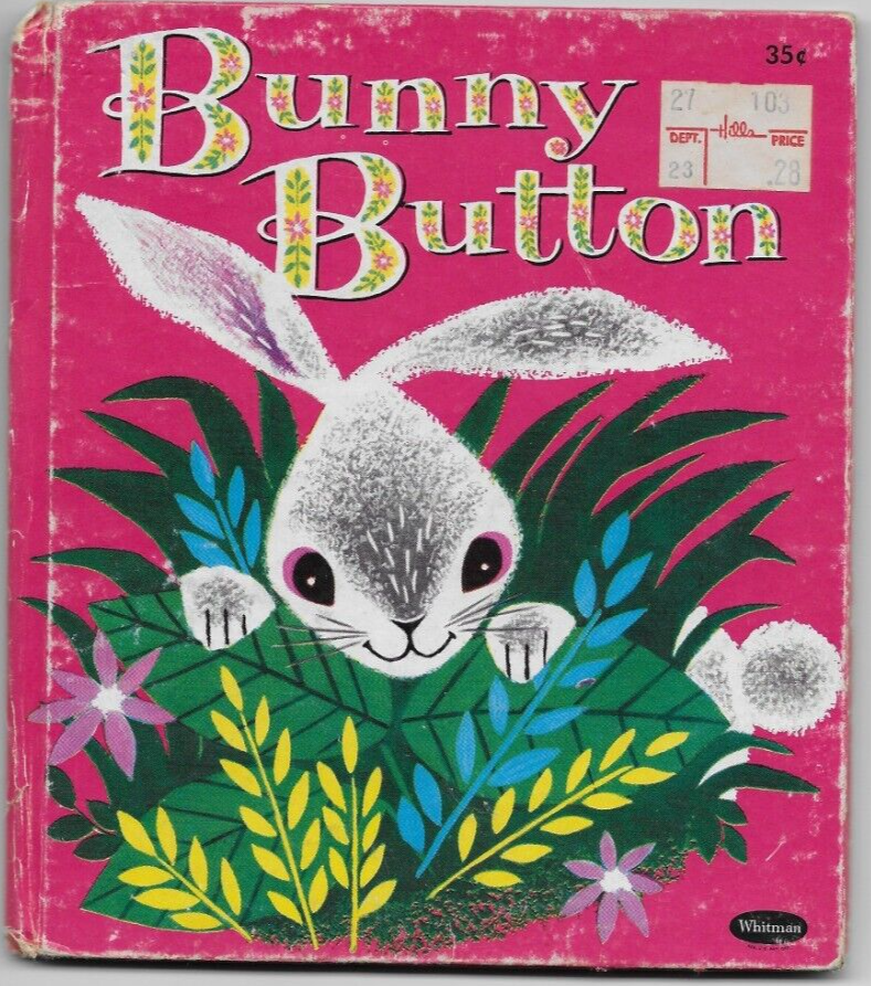 BUNNY BUTTON Whitman Tell a Tales 1953 Rabbit Revena Bernice Myers pink ear