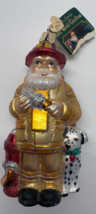 Old World Christmas Blown Glass Fireman Gold Santa w/Dalmatian Dog Ornament