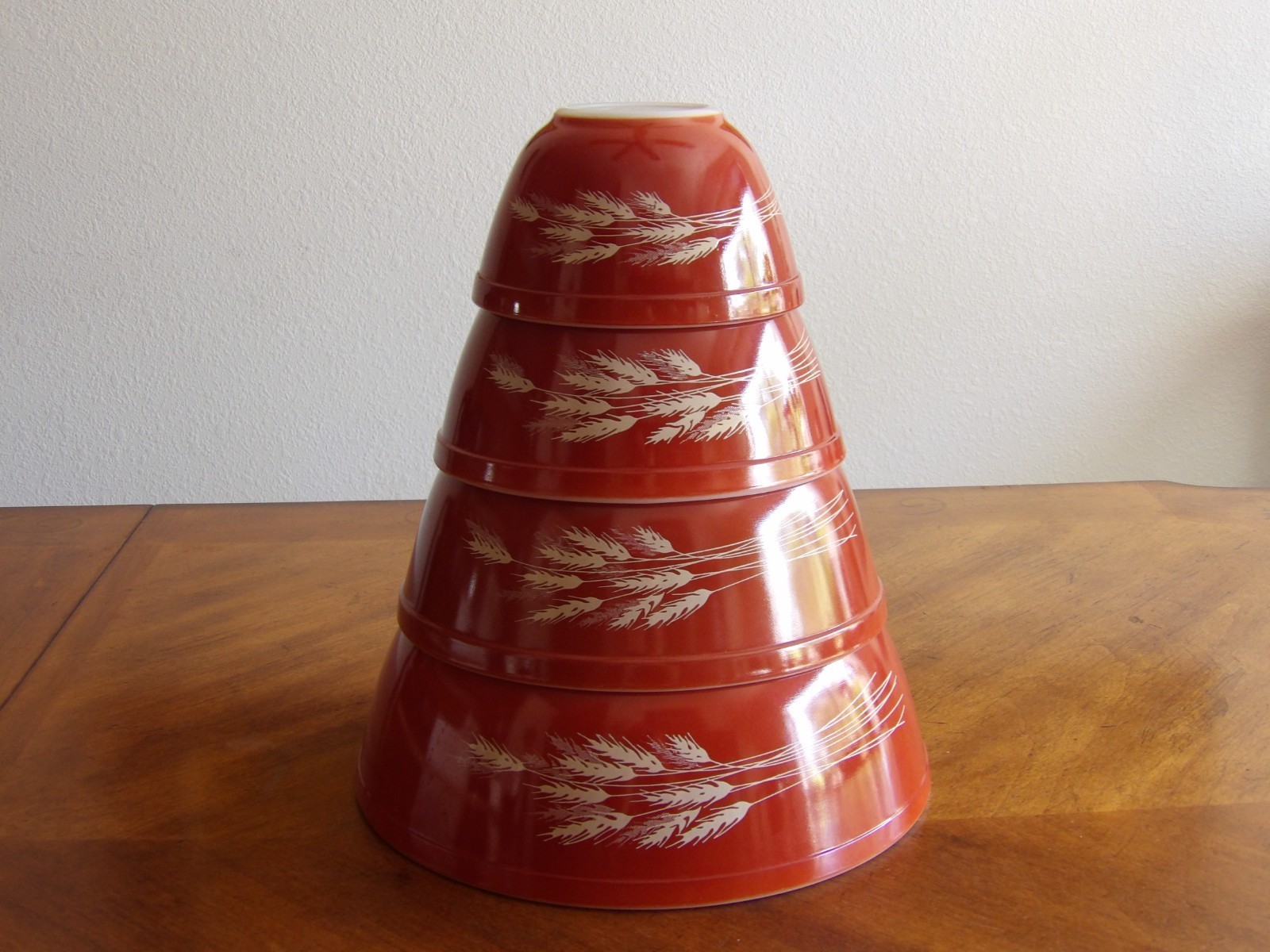 Set of 4 Pyrex Autumn Harvest Wheat Mixing Nesting Bowl 401 402 403 404 Vtg