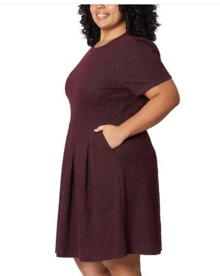 Draper James Womens Dress Dark Red Pockets Crewneck Short Sleeves Fit & Flare