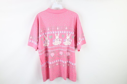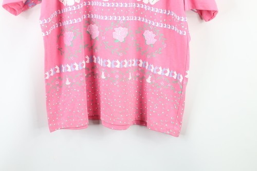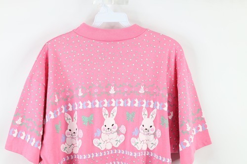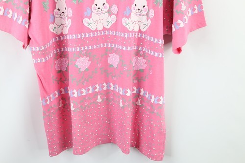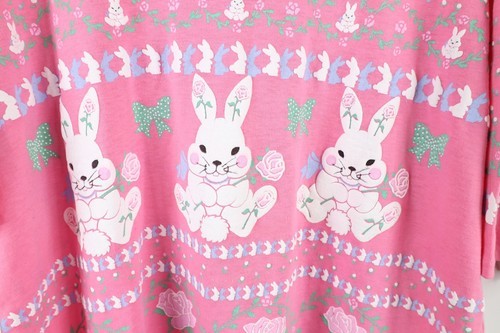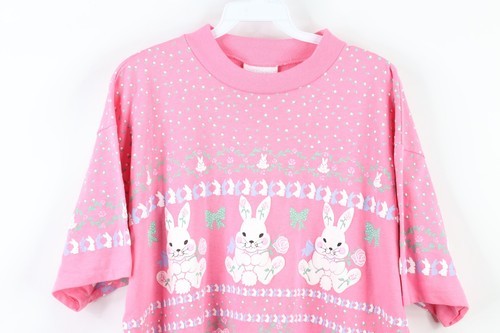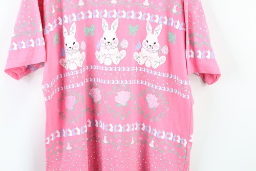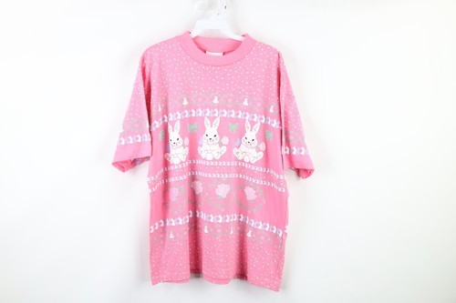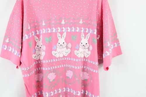 Vtg 80s Streetwear Womens L Fairy Kei Kawaii Flower Bunny Rabbit Pastel T-Shirt