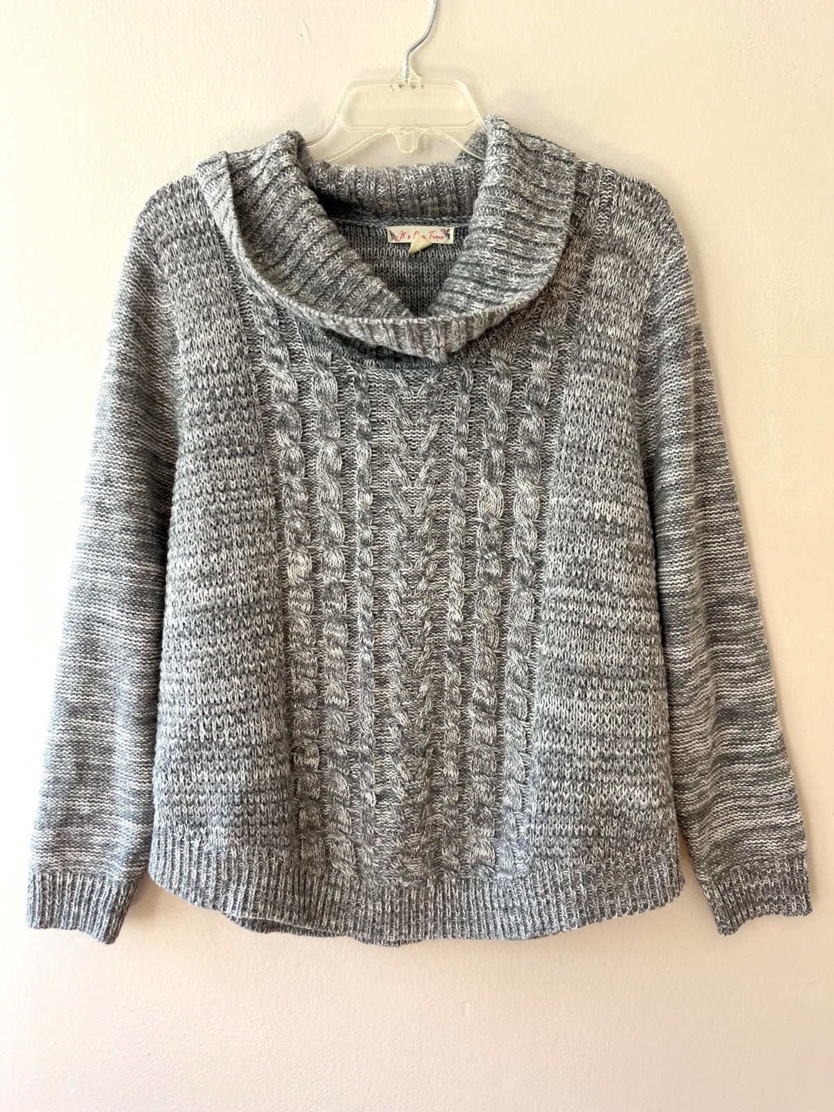 Its Our Time Sz M Cable Knit Gray Pullover Sweater Cowl Neck Long Sleeve