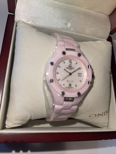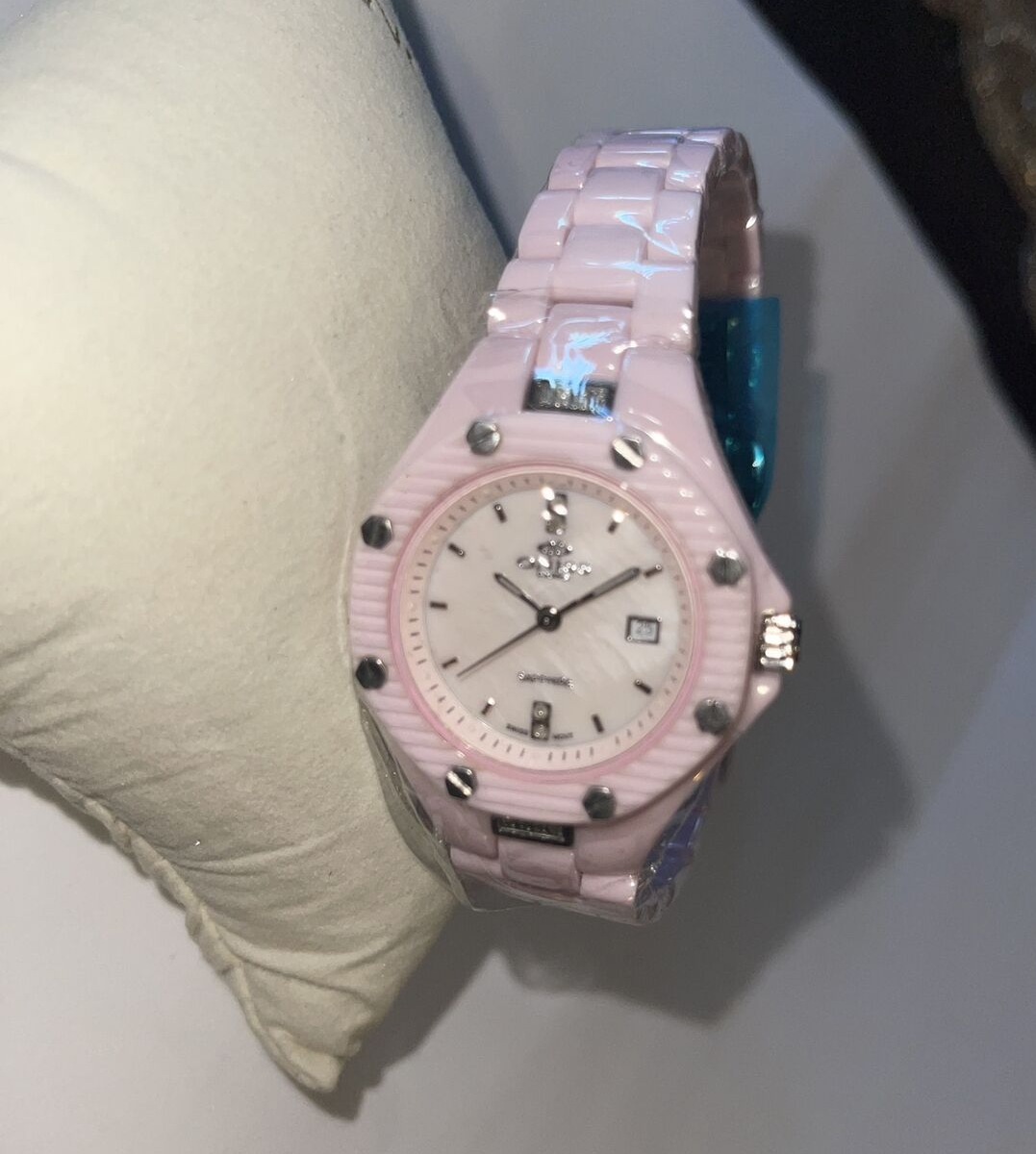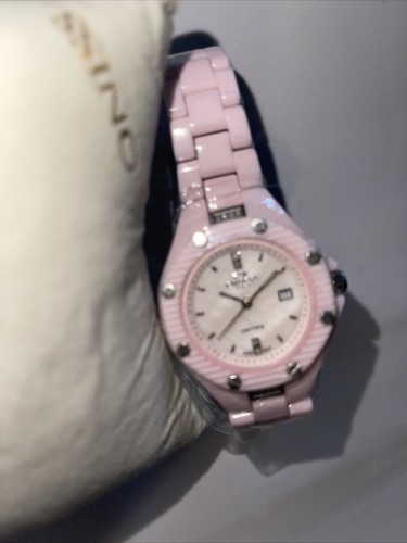 Oniss Paris Women's Diamond Accented Pink silver Hi tech Ceramic Watch new