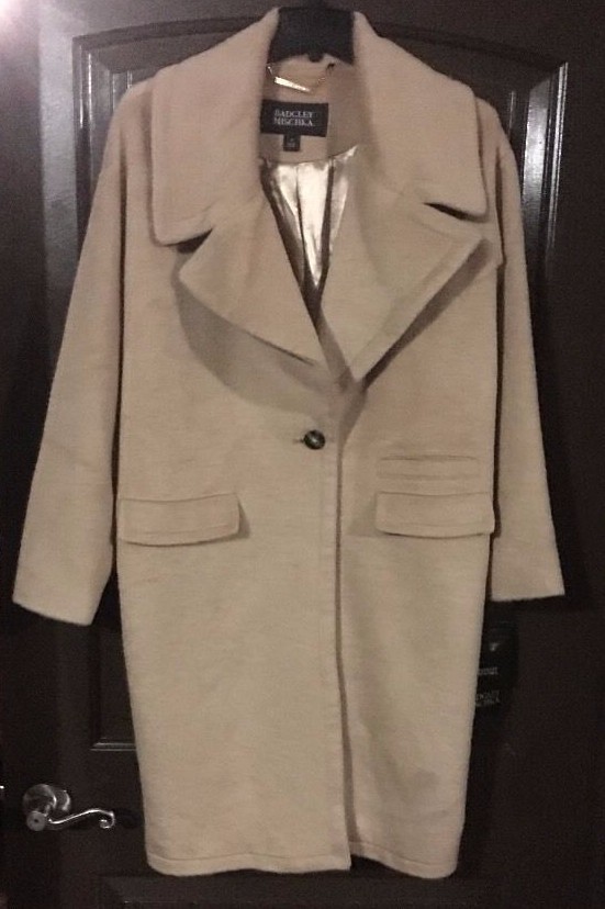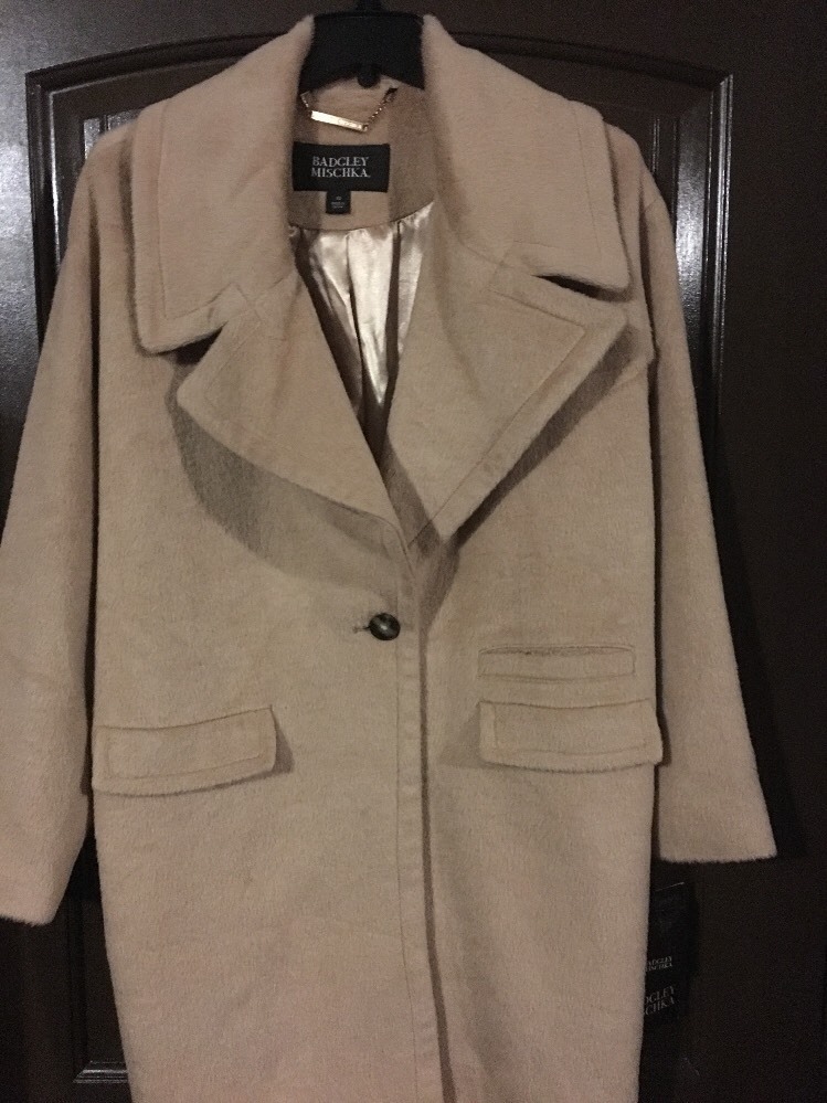 Badgley Mischka Womens Verona Wool blend Coat sz L Nude Camel NEW