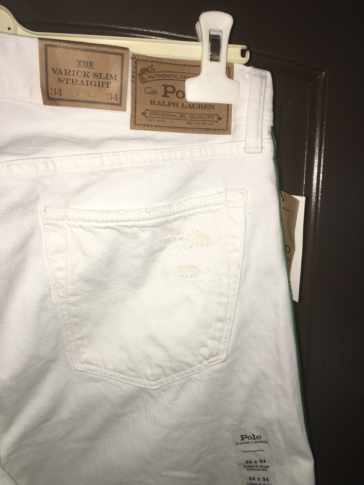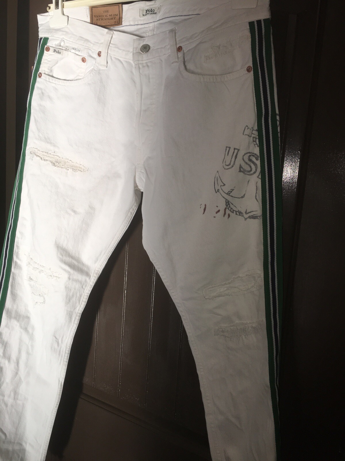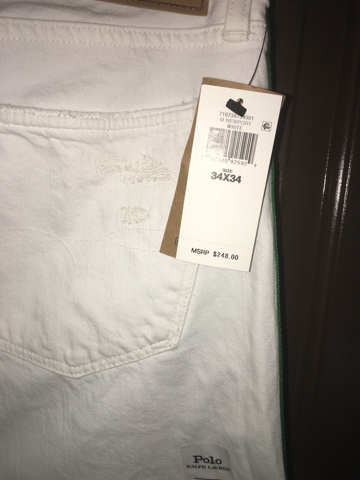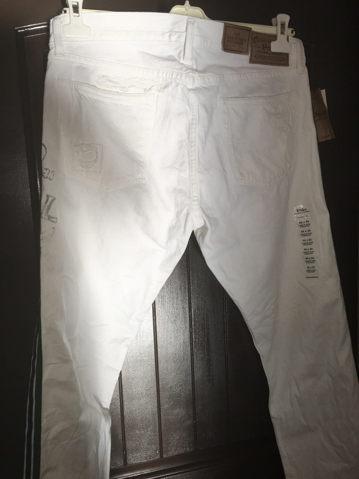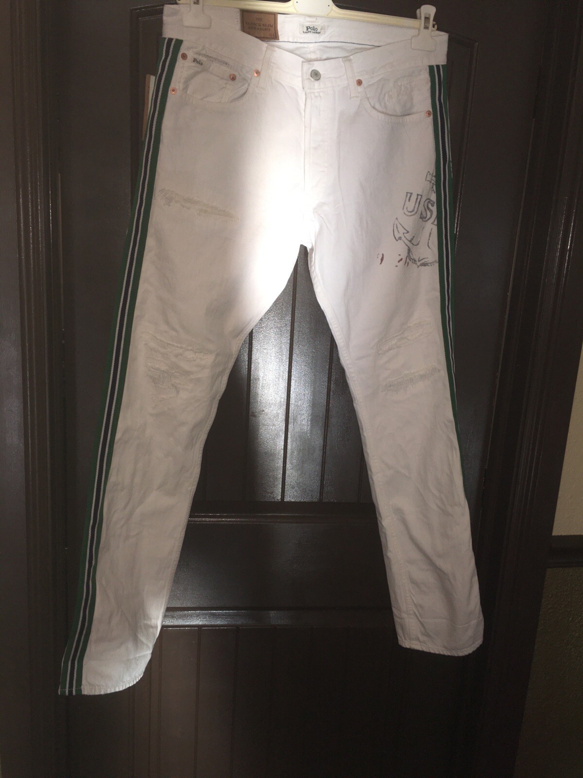 Polo Ralph Lauren Newport Slim Distressed White Denim Jean 34 x 34 new $248