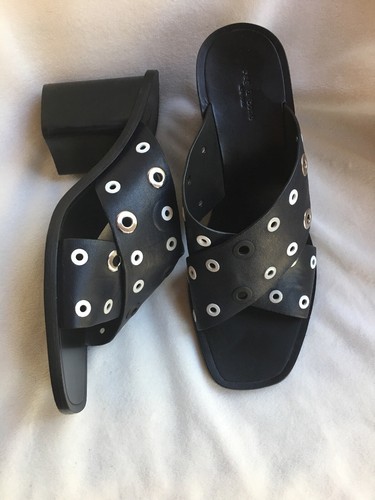 Rag & Bone Slide Paige Sandals Crisscross Black Block Heel WOMEN SZ 37 NEW $485