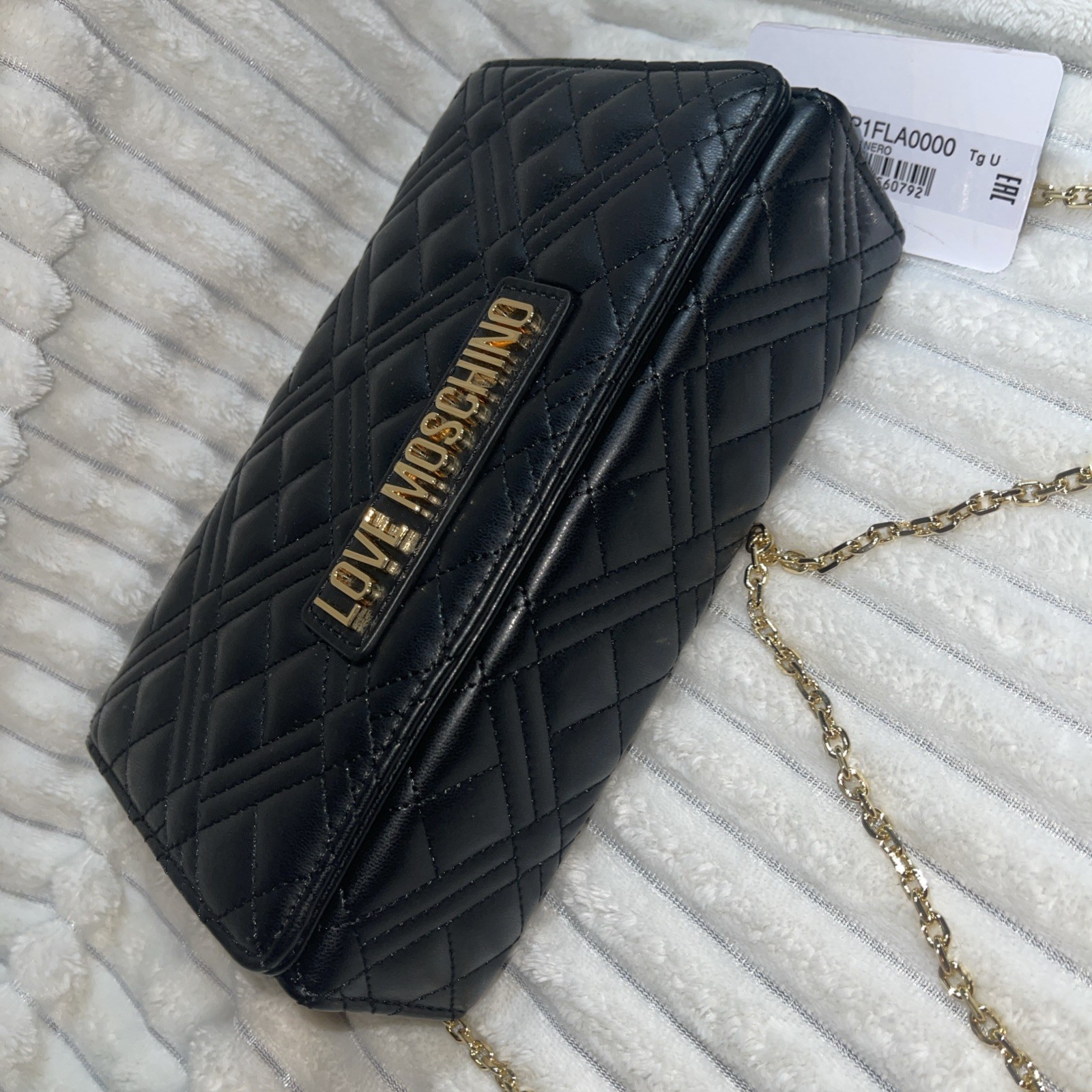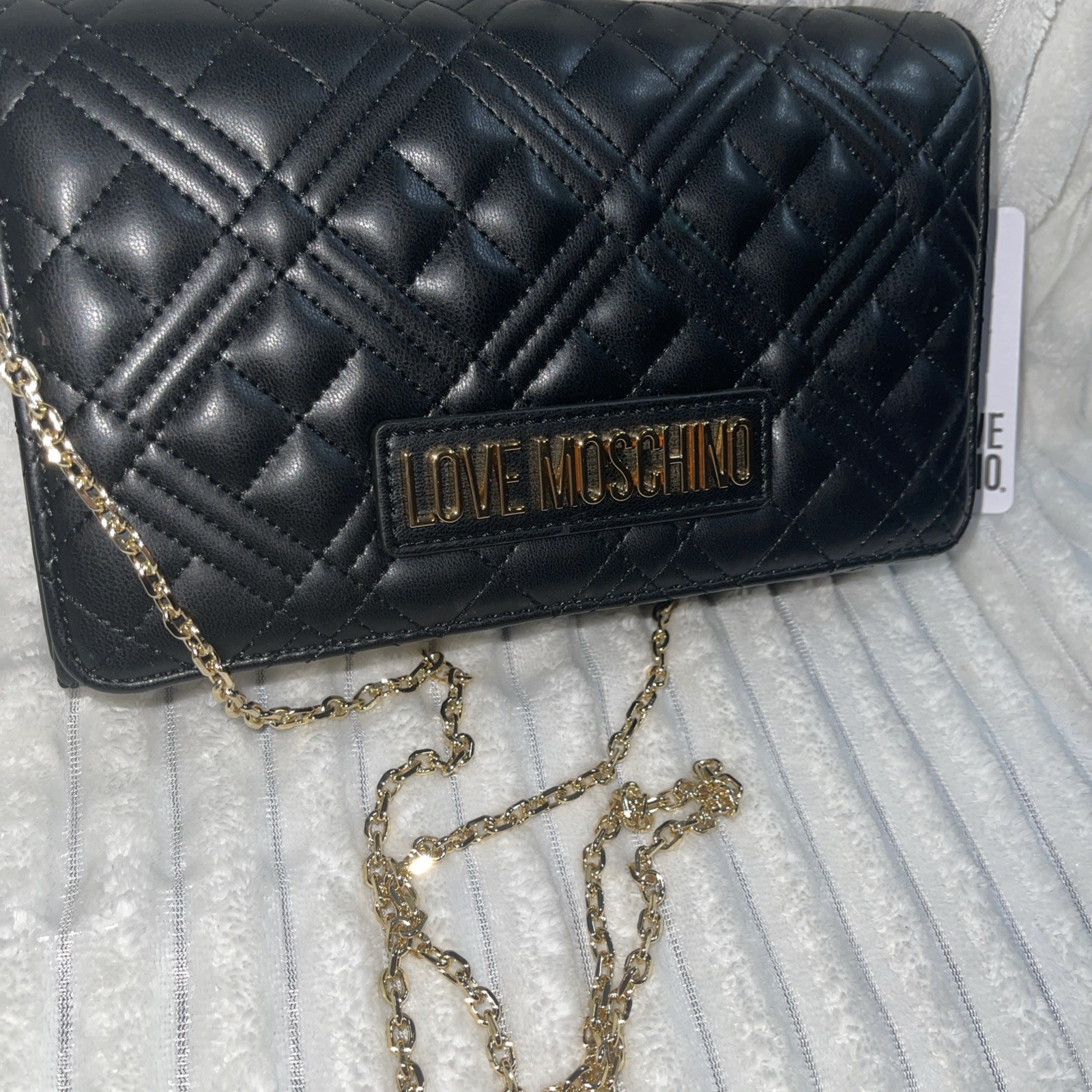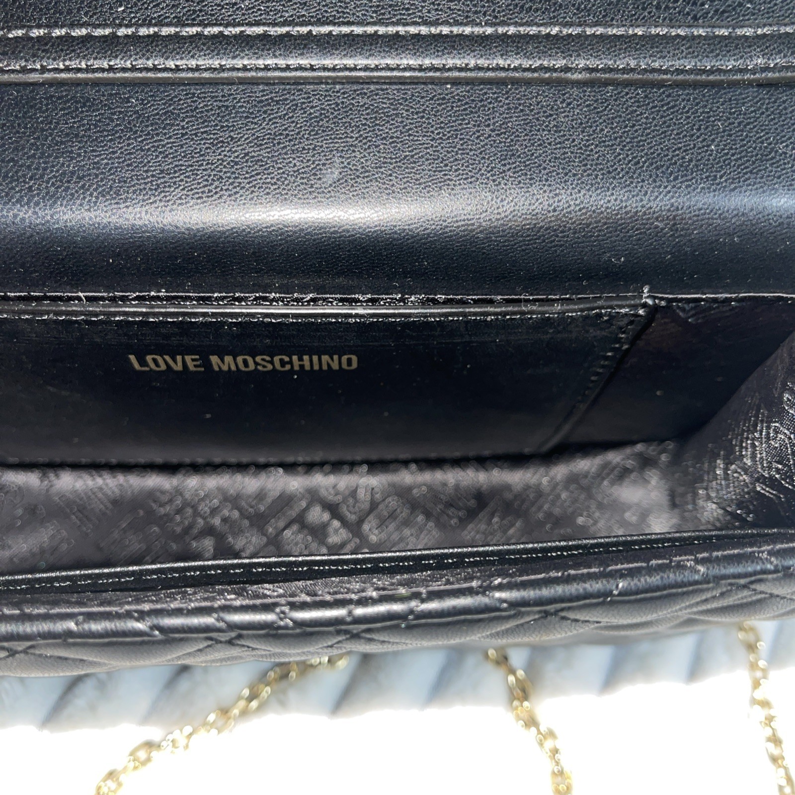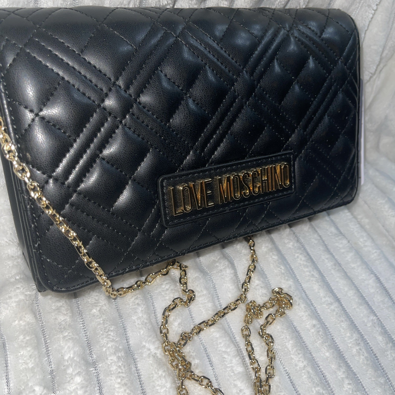 LOVE MOSCHINO BLACK QUILTED CROSSBODY CLUTCH BAG BORSA PU NERO