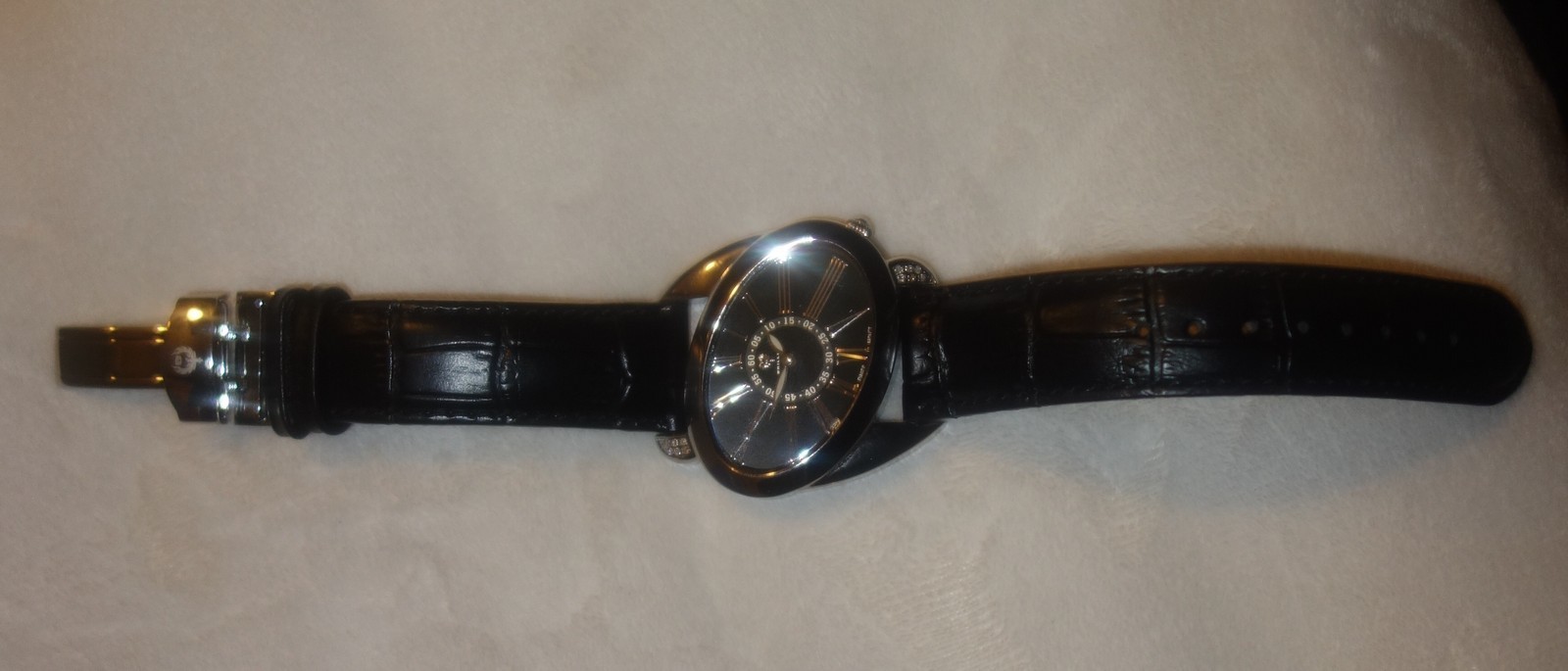 - Case decorated with 12 eye catching white diamonds - 0.12 total carat weight