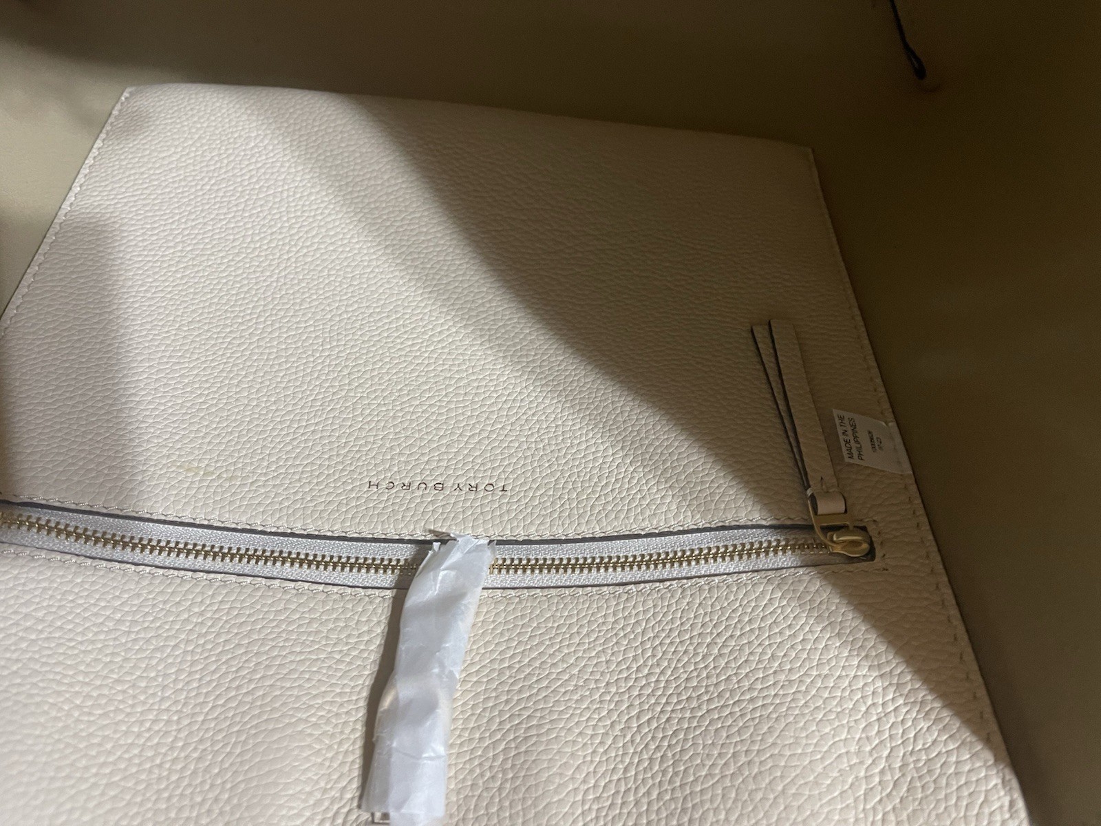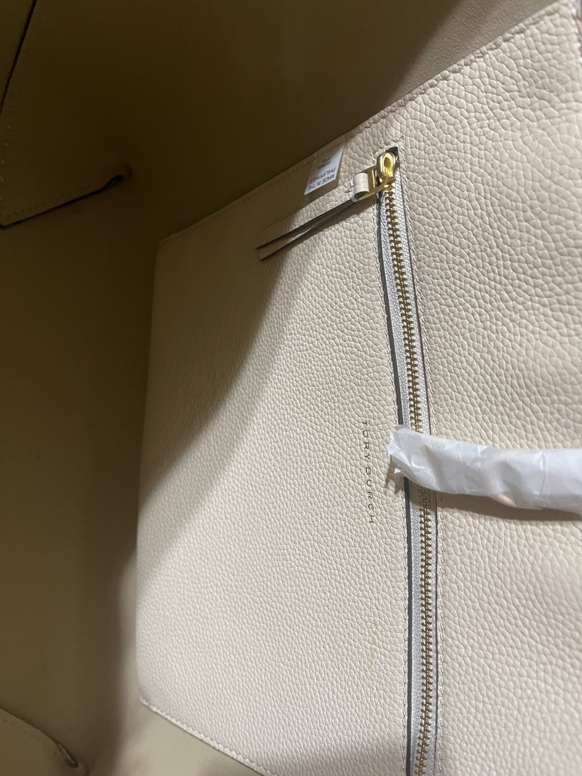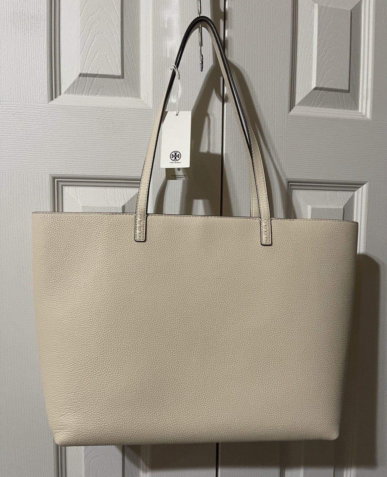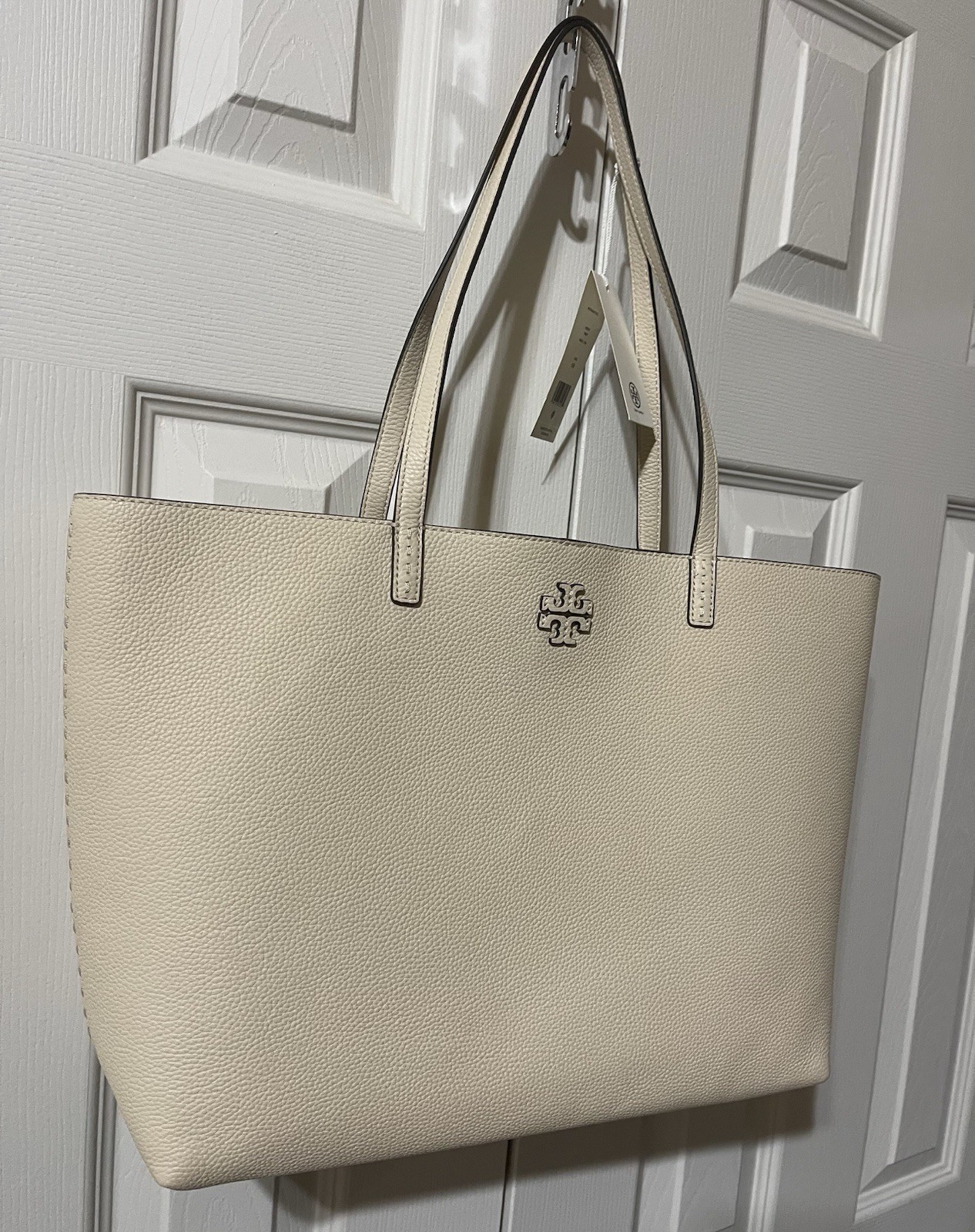 Tory Burch McGraw Pebbled Leather Tote Bag sand brie new