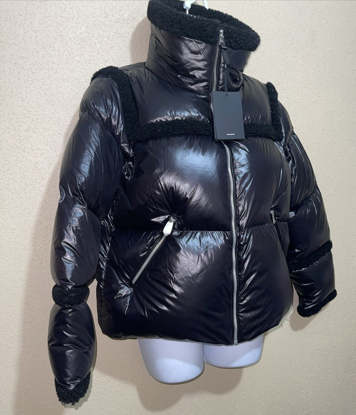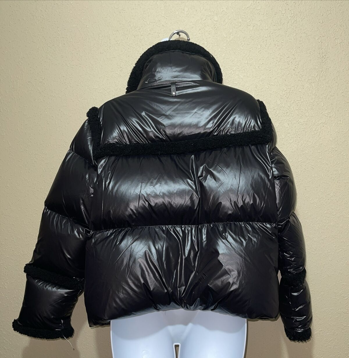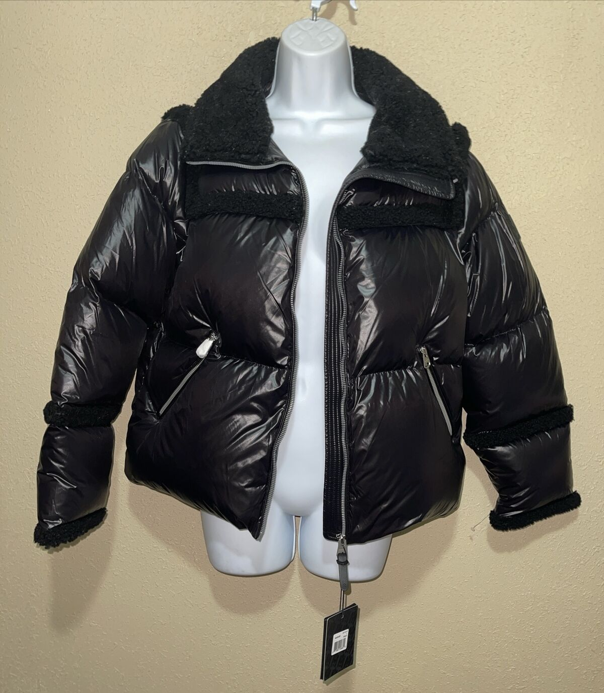 Mackage MIYA-R Puff Down Jacket with Shearling Trim Black SZ L NEW