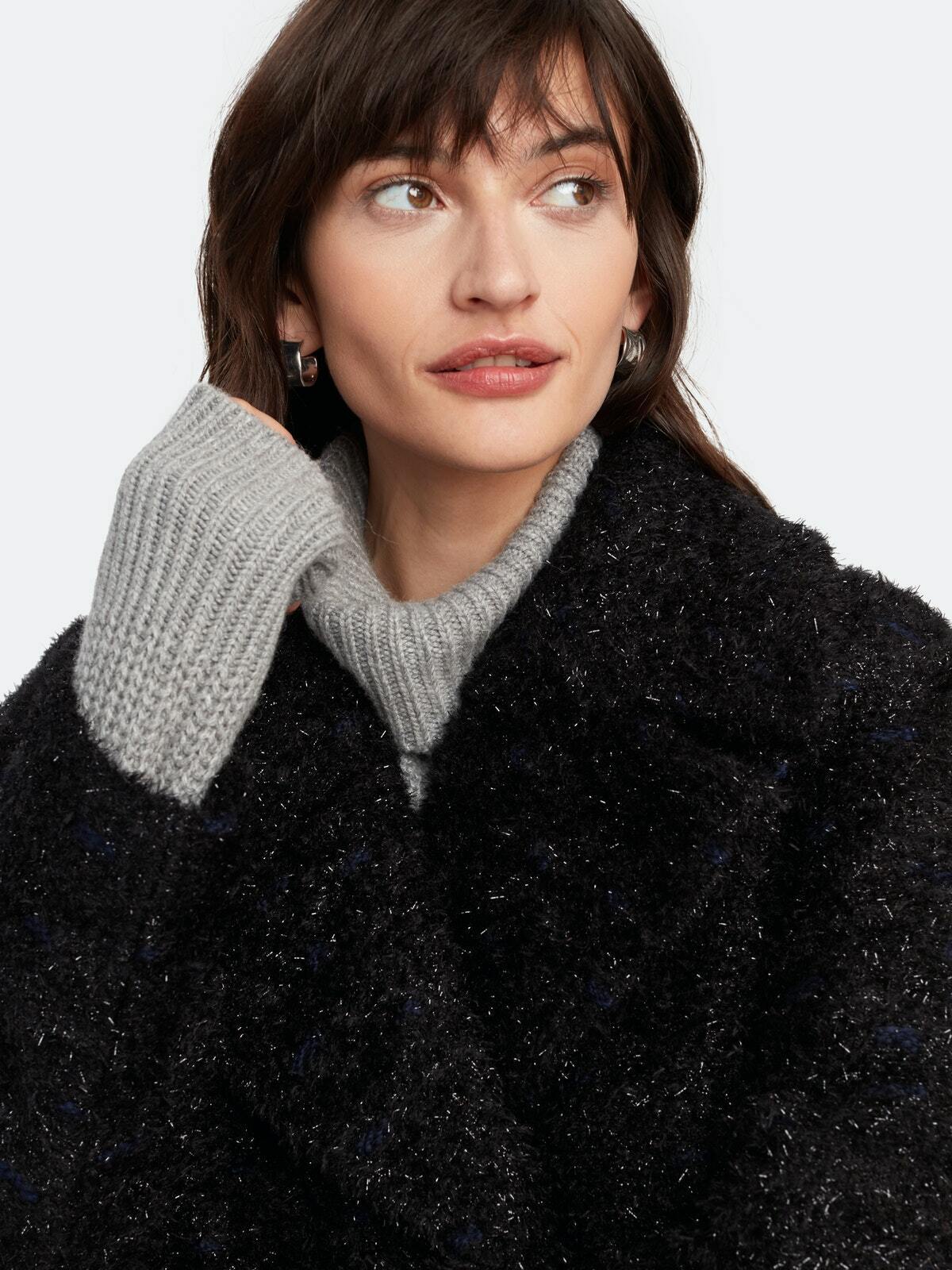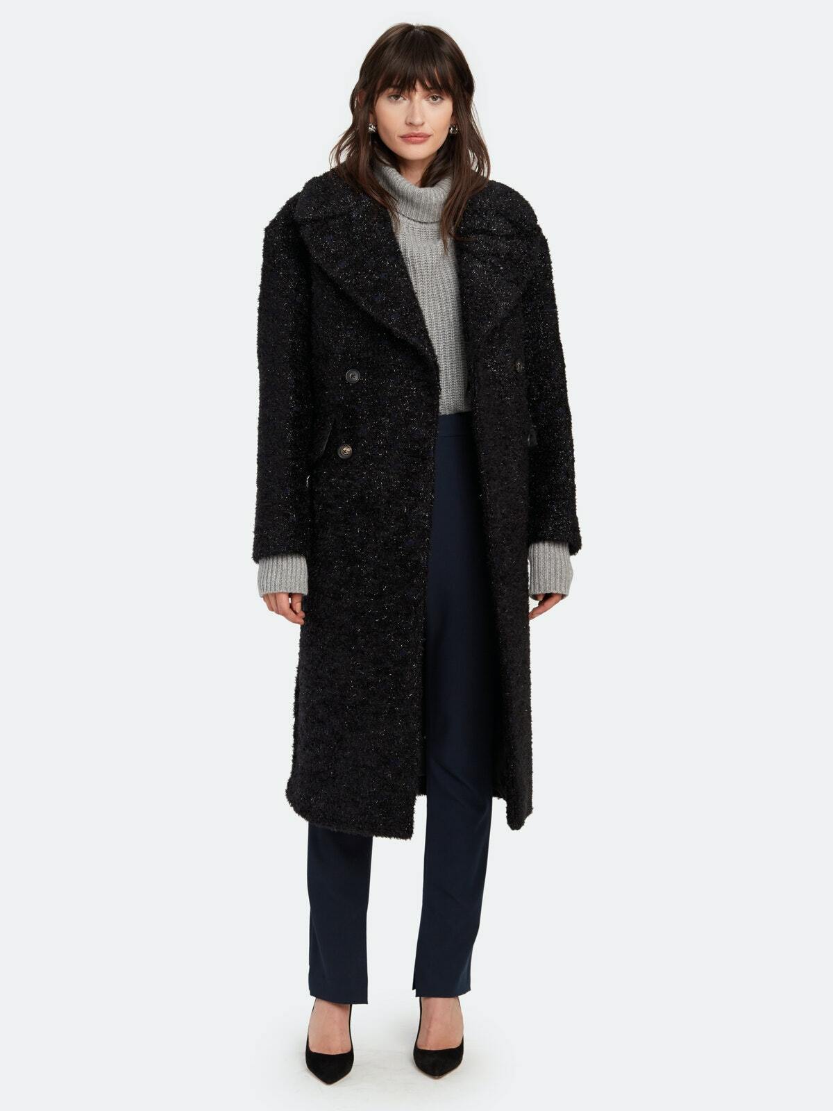 No match for cold weather, this sophisticated coat updates a classic winter style with a slightly oversized fit (for a snuggly feel) and shimmery metallic tweed (for that festive glow). Summed up, it's an investment piece you'll wear to every holiday party.