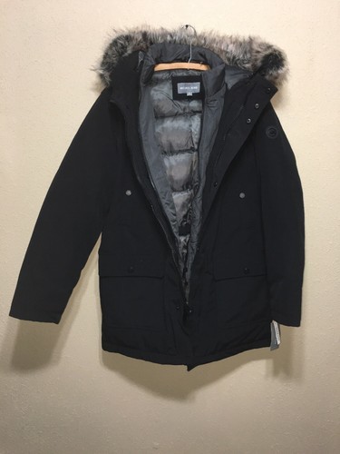 Michael Kors Men's Hooded Bib Snorkel Parka Coat Fur Trim BLACK SZ M NEW $375