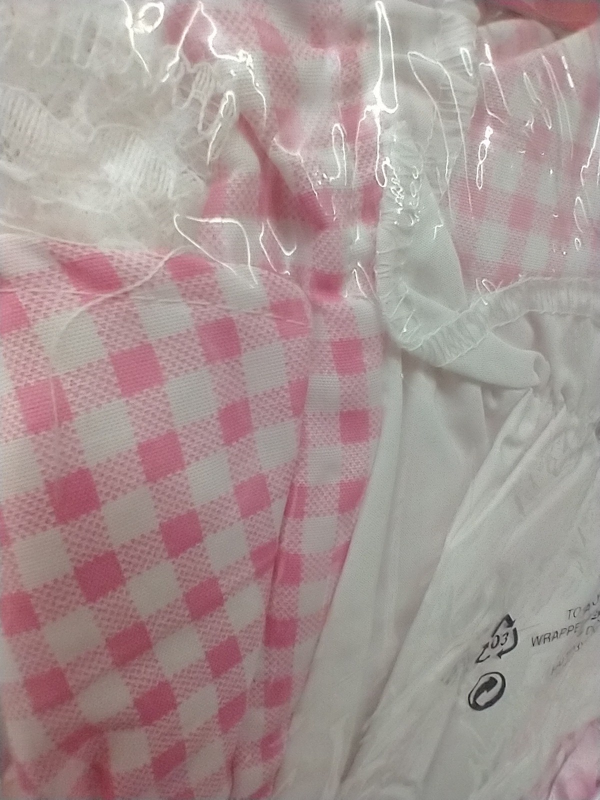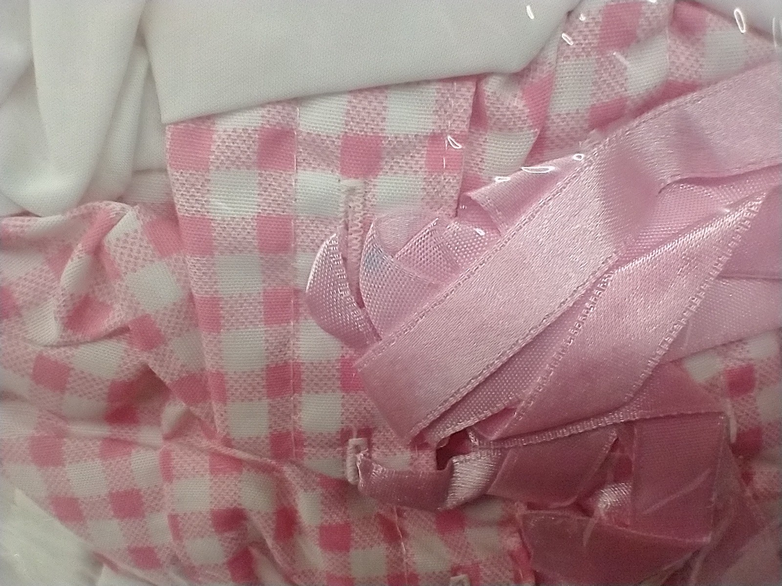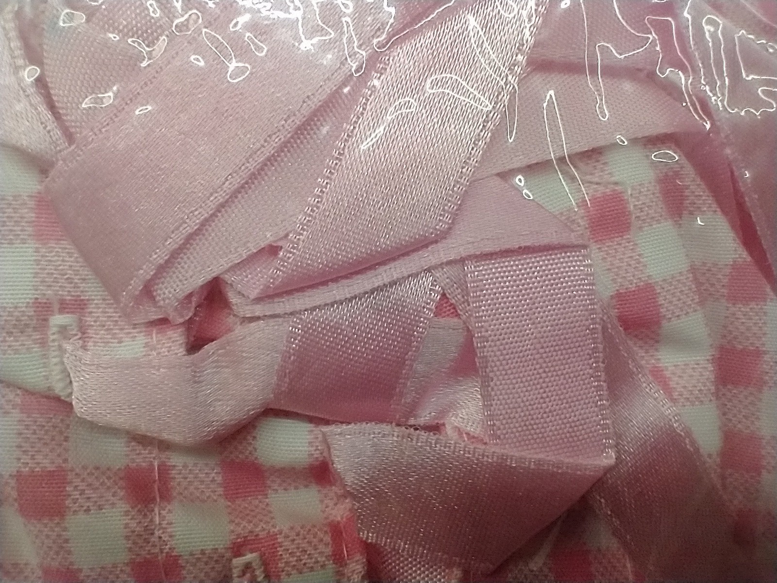 ADDITIONAL INFO: NEW IN PACKAGE BUT OLDER ITEM. EXPECT WRINKLES / CREASES IN FABRIC. Longer Loose Threads need trimming. Some colored specks on pink ribbon. This is just what I can see through the packaging. Plastic outer package has open area. Some package inserts have different model images. Please see all images for an idea. SOLD AS IS.