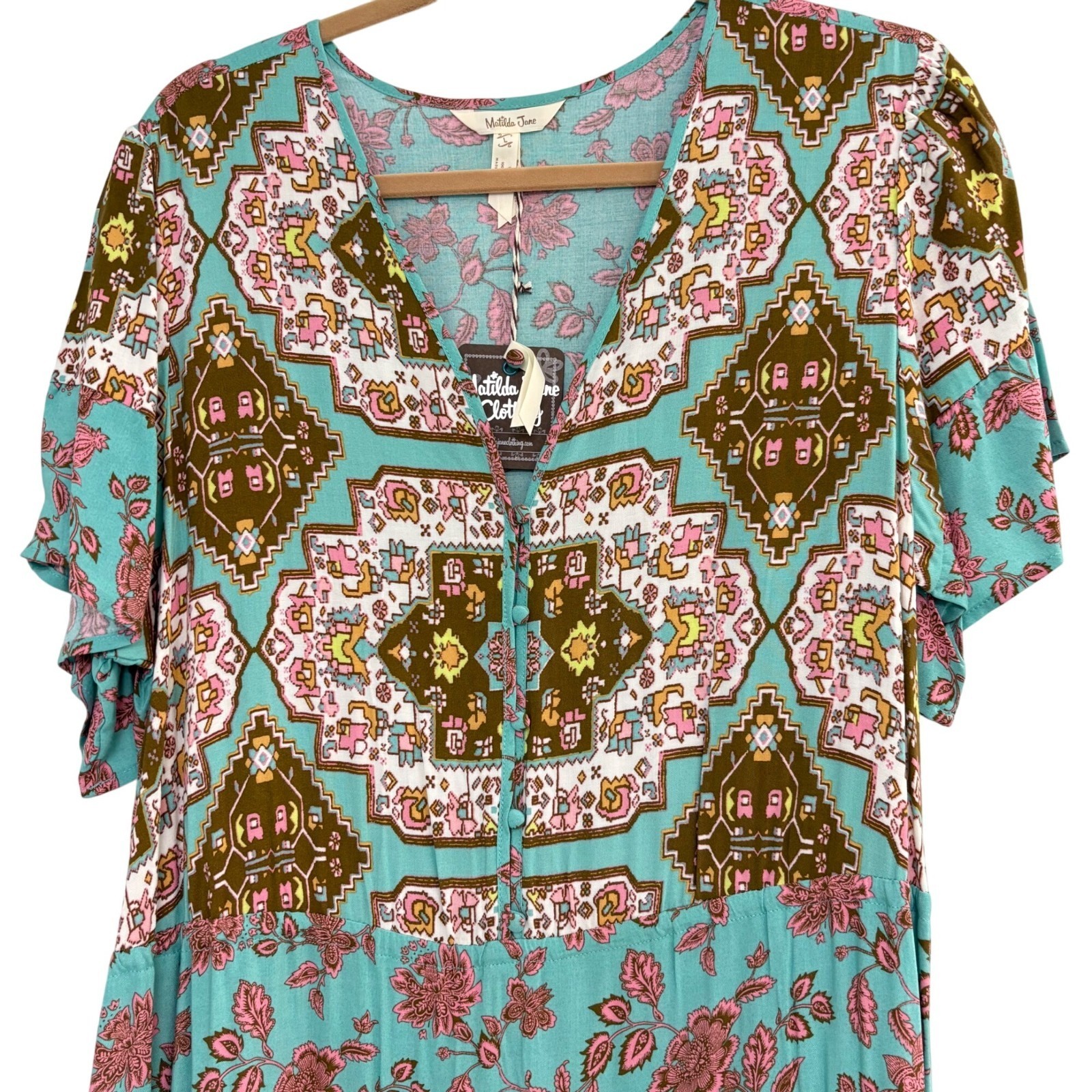 Matilda Jane Boho Floral "Down to Earth" Dress Size L NWT