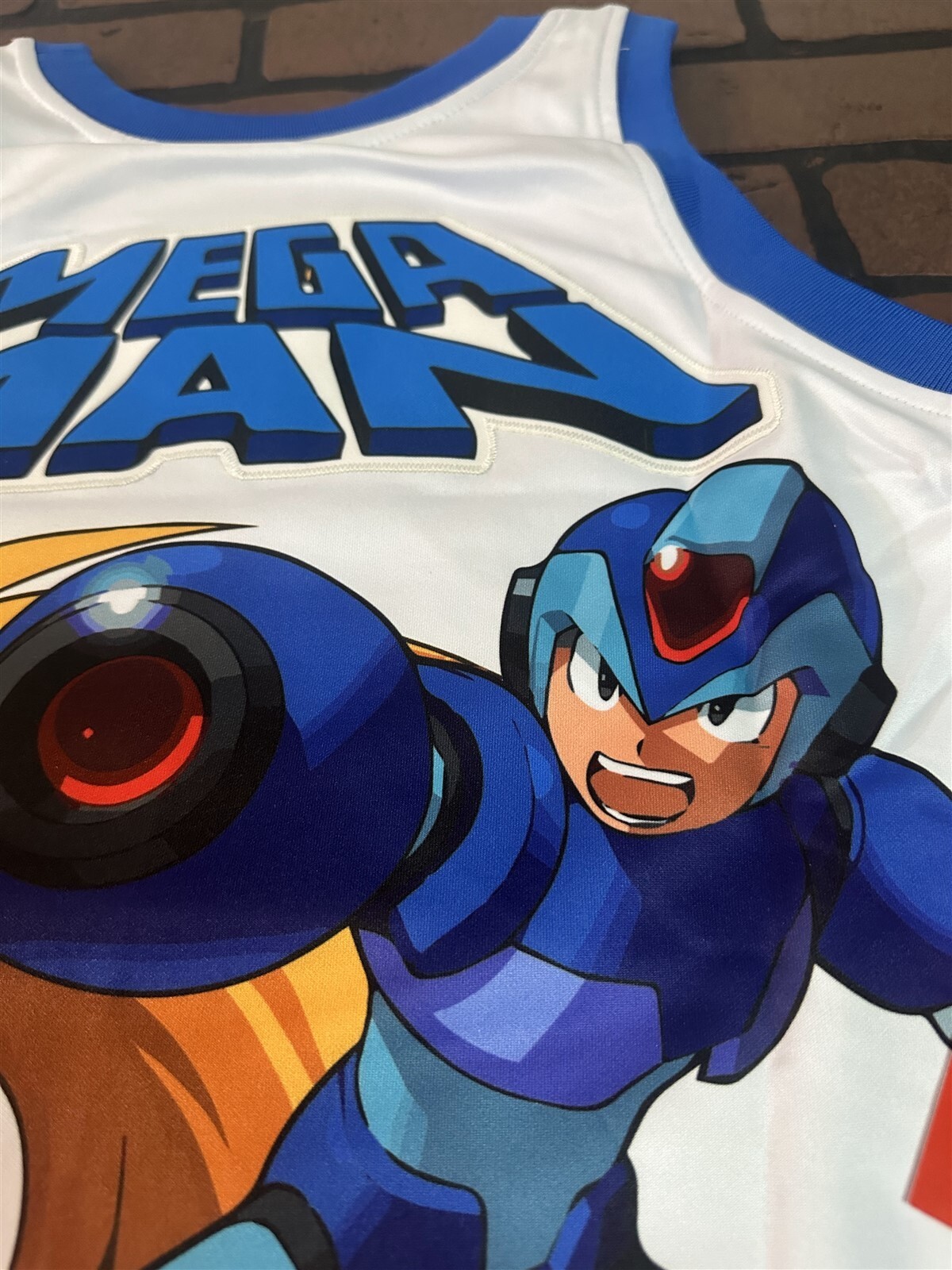 Mega man Blue Headgear Classics Basketball Jersey ~ jamais porte ~ Sl