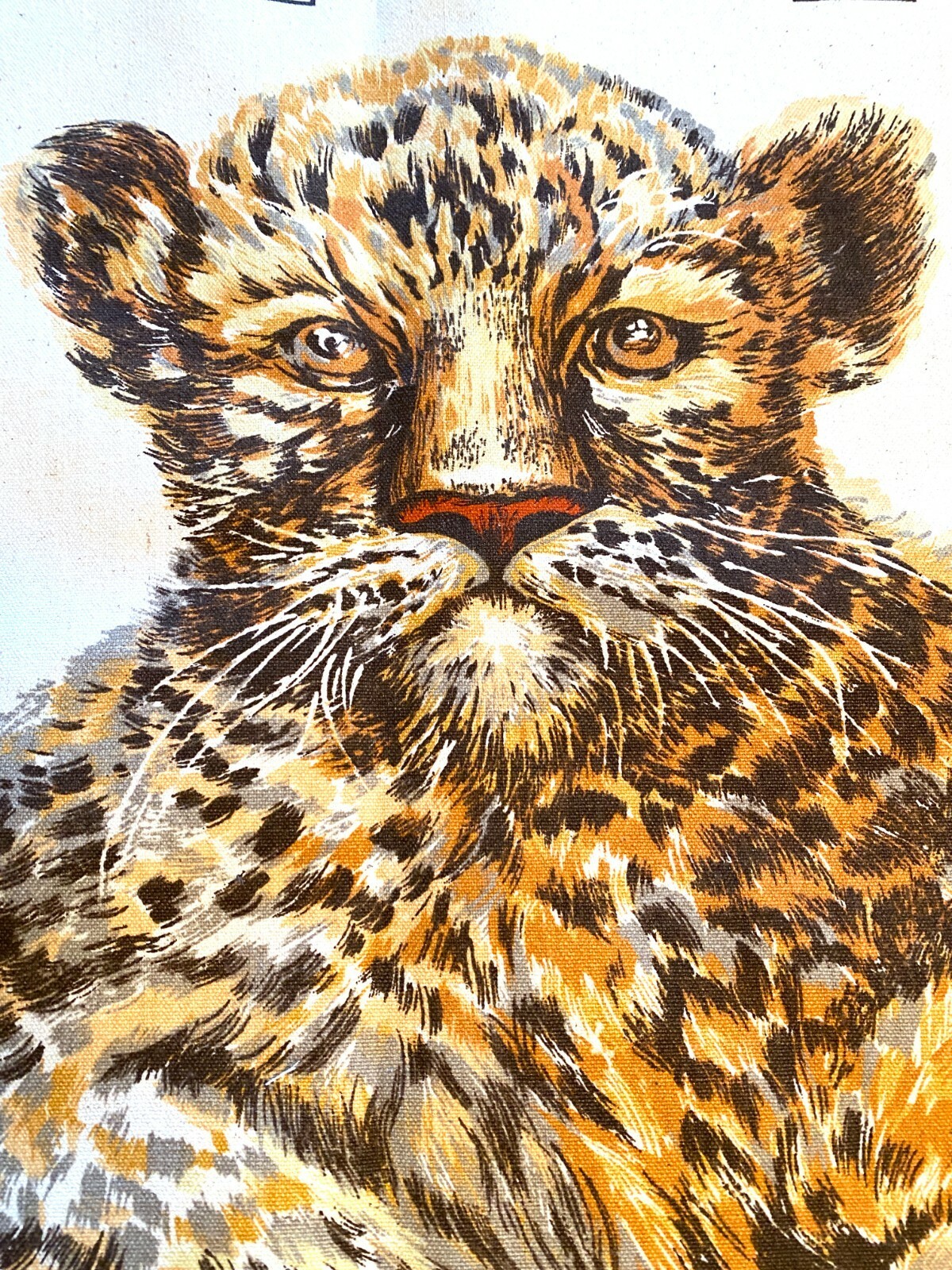 VTG Cat PURSE/TOTE BAG Canvas KIT - 1970's New Leopard Cub Print Xlarge Unused