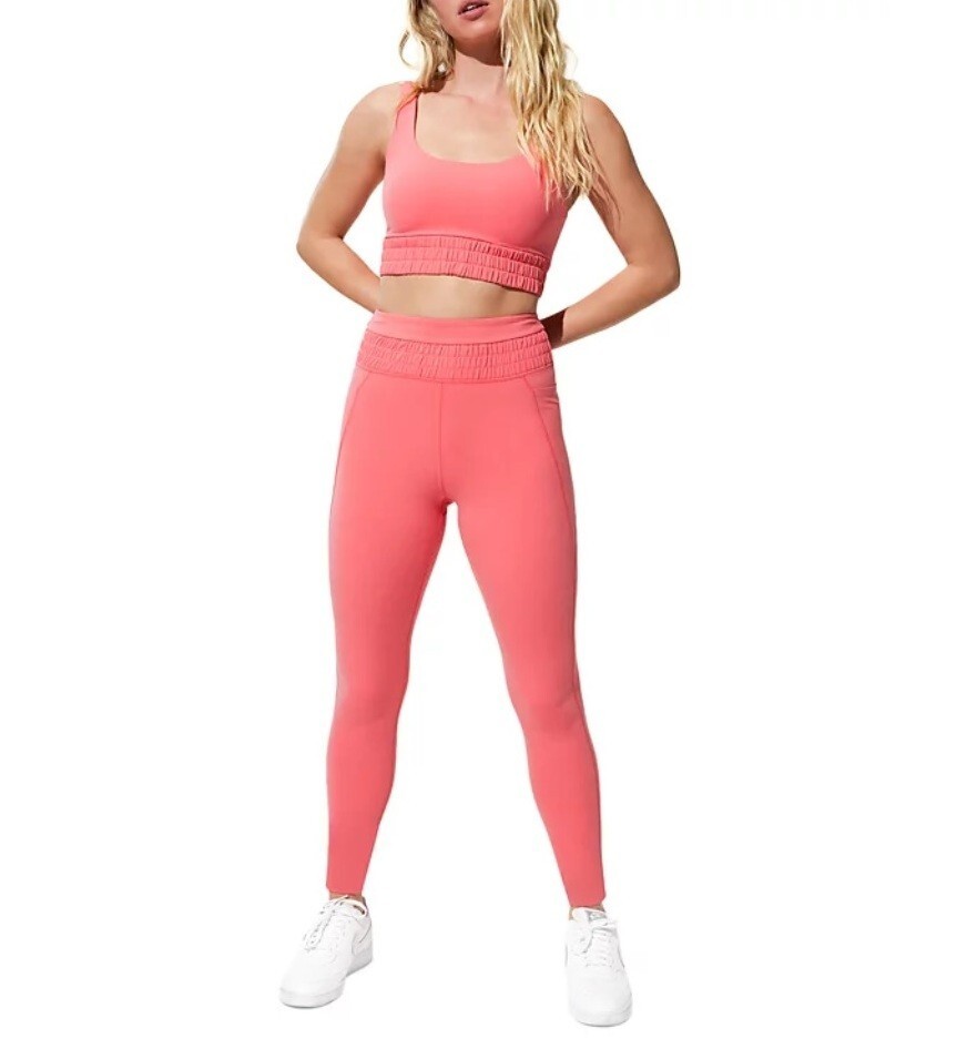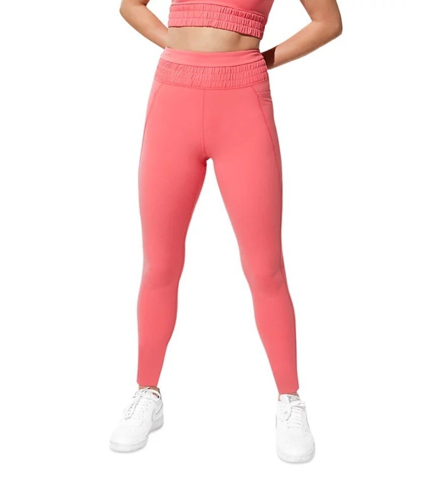 EleVen by Venus Williams Let's Roll Legging Women Sz XS Coral Smocked High Waist
