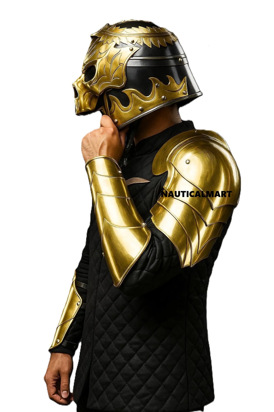 Medieval Knight Steel Fantasy Skull Helmet With Pauldrons, Steel Bracers-Larp, Cosplay Roleplay Costume