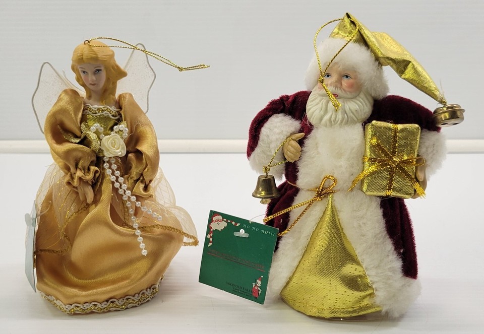 *Q) Vintage Christmas Tree Toppers Angel Santa Claus Holiday Ornaments