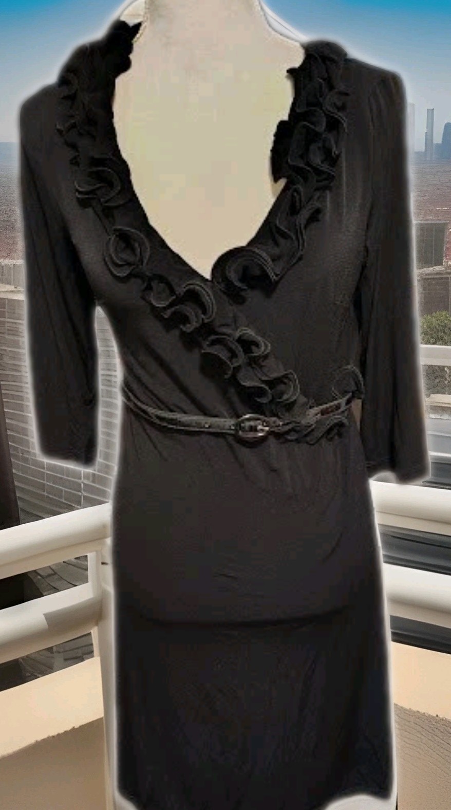 New ALYX Ruffle Belted Dress Ruffle Knee Length 3/4 Sleeve Dress Size 10 Black