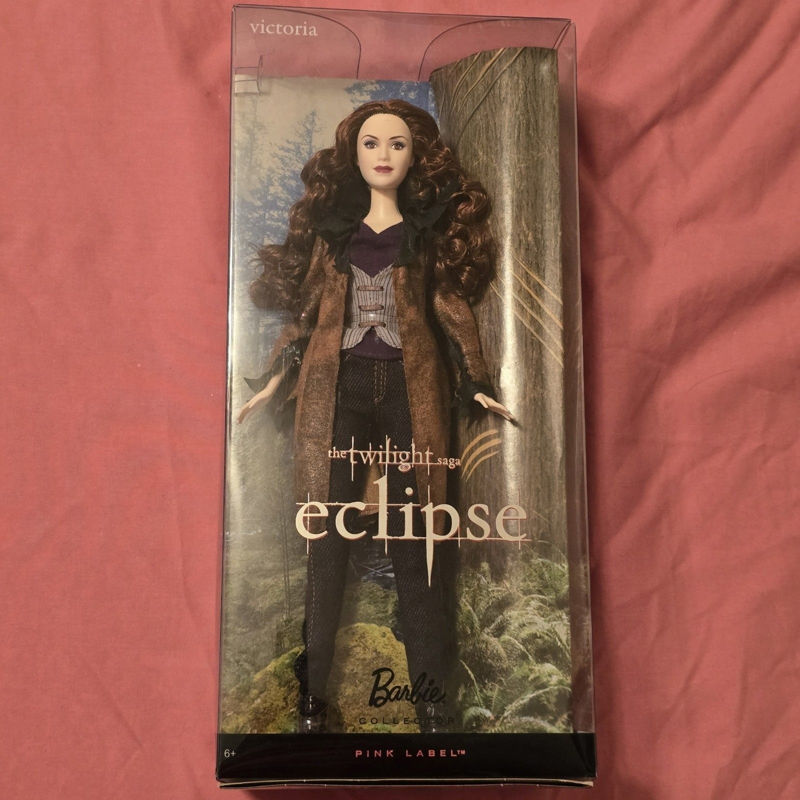 This Twilight Saga Barbie doll by Mattel features Victoria from the movie Eclipse. Part of the Pink Label Collection, the doll captures the character?s signature auburn curls and outfit from the film. A must-have for Twilight fans and Barbie collectors alike.