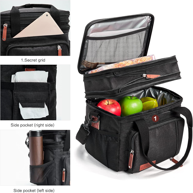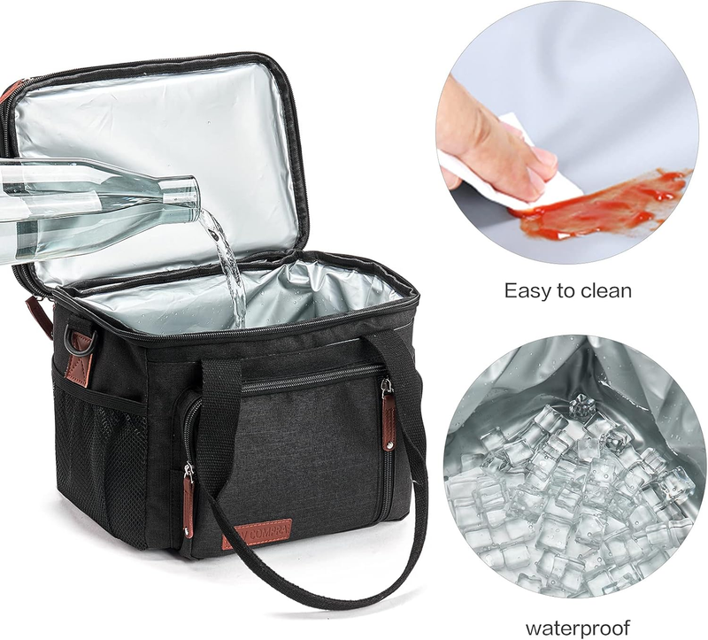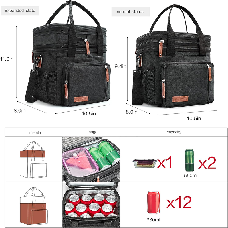 Lunch Bags for Men Women, Black Adult Lunch Box for Work, Expandable