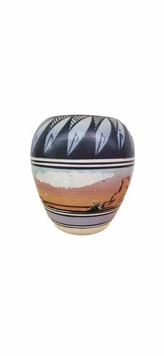 The vase reflects the rich culture of Native American art and is a perfect addition to any collection. Handmade with care, this piece is a stunning representation of the Tribal Affiliation of Navajo. Add this unique piece of art to your collection today and experience the beauty of Native American pottery.