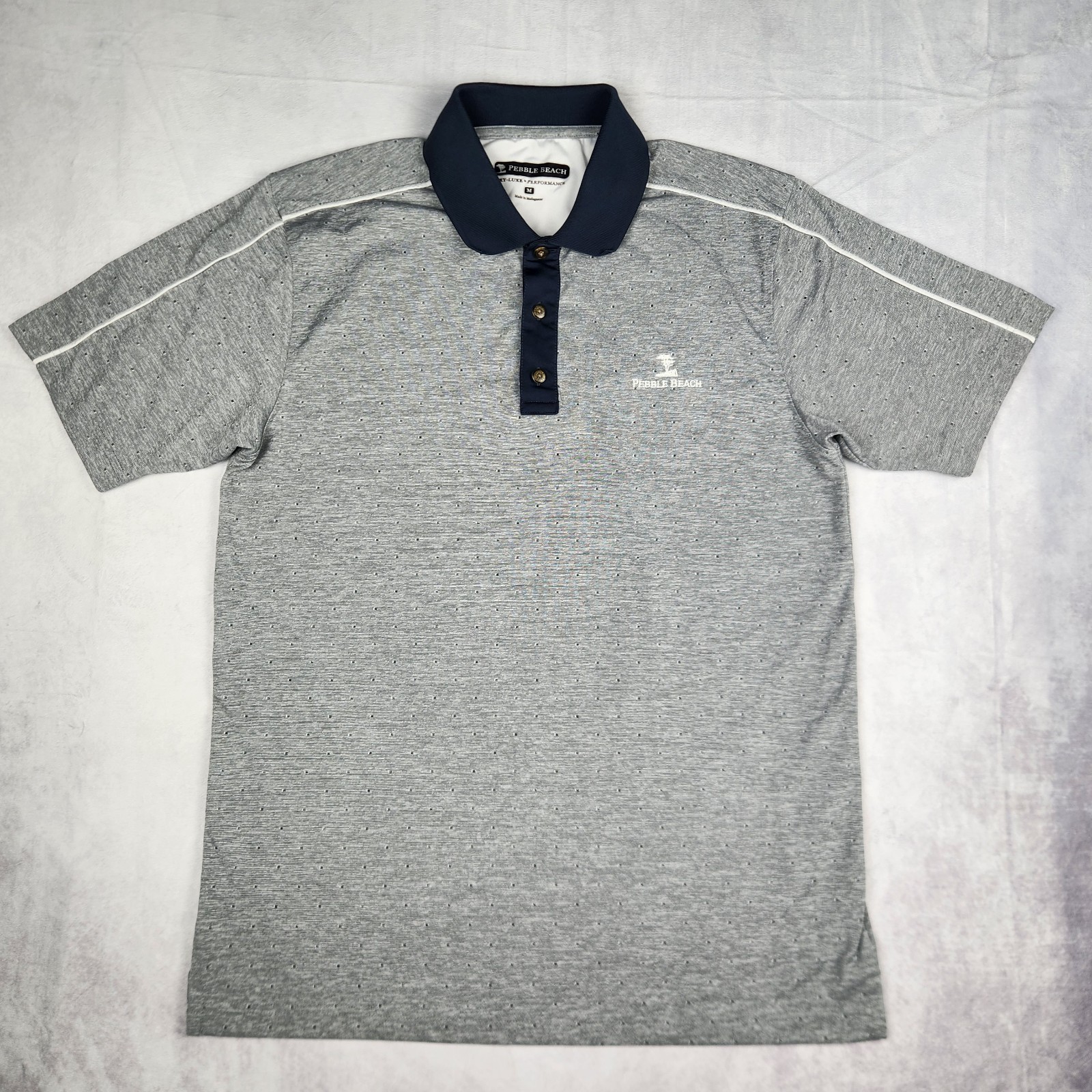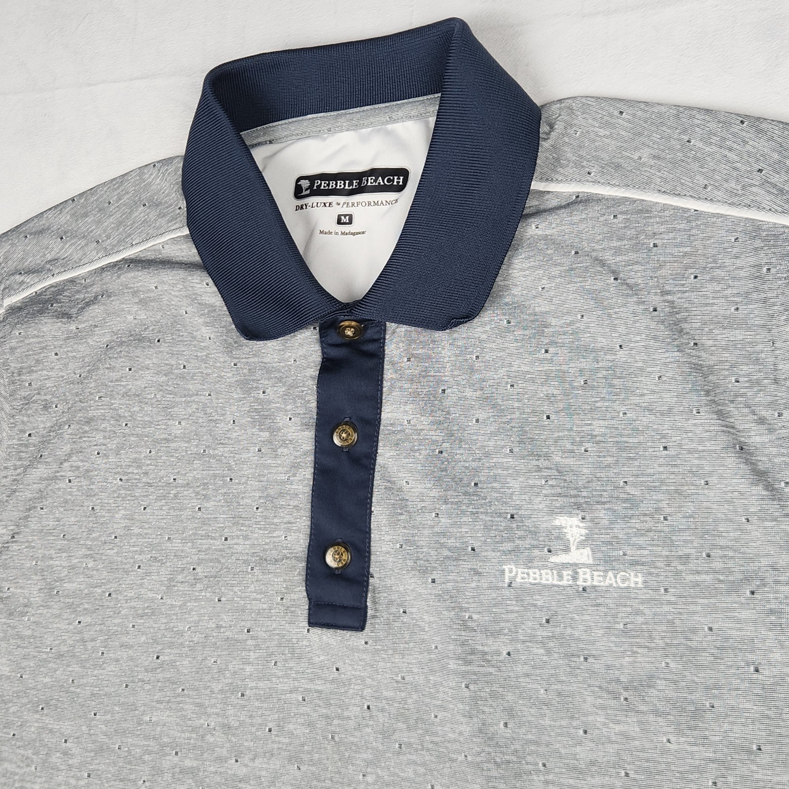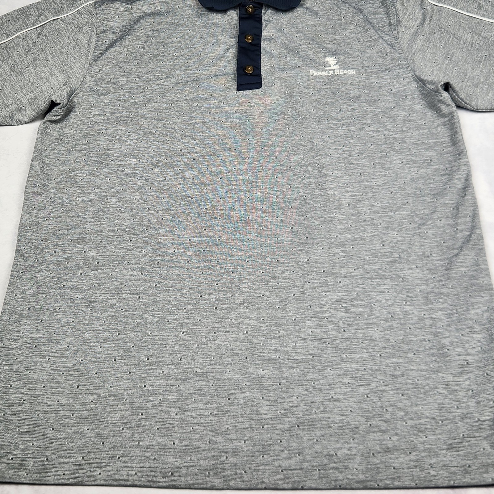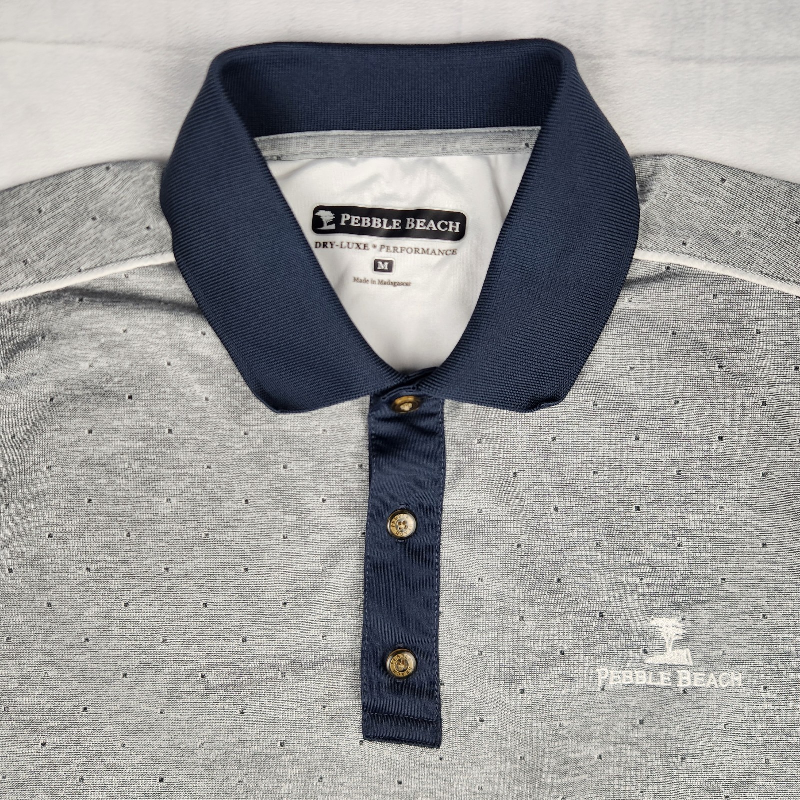 Pebble Beach Golf Polo Shirt Mens Medium Gray Dry-Luxe Performance Geometric
