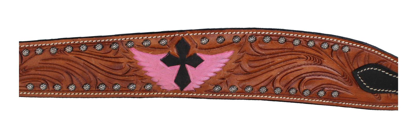 Horse Show Bridle Western Leather Headstall Tack Pink Butterfly 7646HB