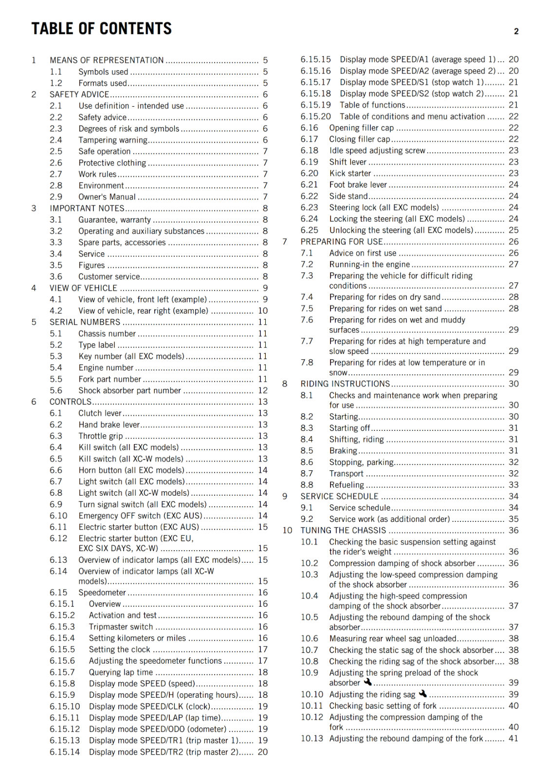 450 EXC/450 EXC SIX DAYS/450 XC-W/500 EXC/500 EXC SIX DAYS/500 XC-W |