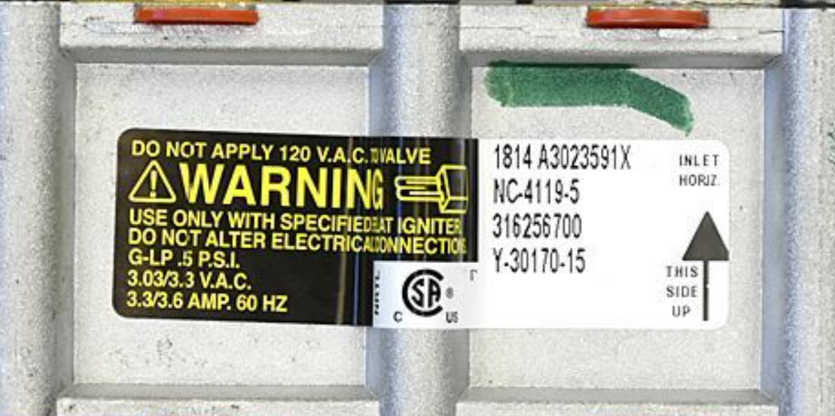 The Frigidaire NC-4119-5, A3023591X, 316256700 Gas Safety Valve (Upper Oven) is a genuine OEM replacement part for gas ranges. This safety valve regulates the flow of gas to the oven burner, ensuring safe ignition and consistent heating. If your oven is not heating, failing to ignite, or experiencing gas flow issues, replacing the gas safety valve will restore safe and reliable operation.