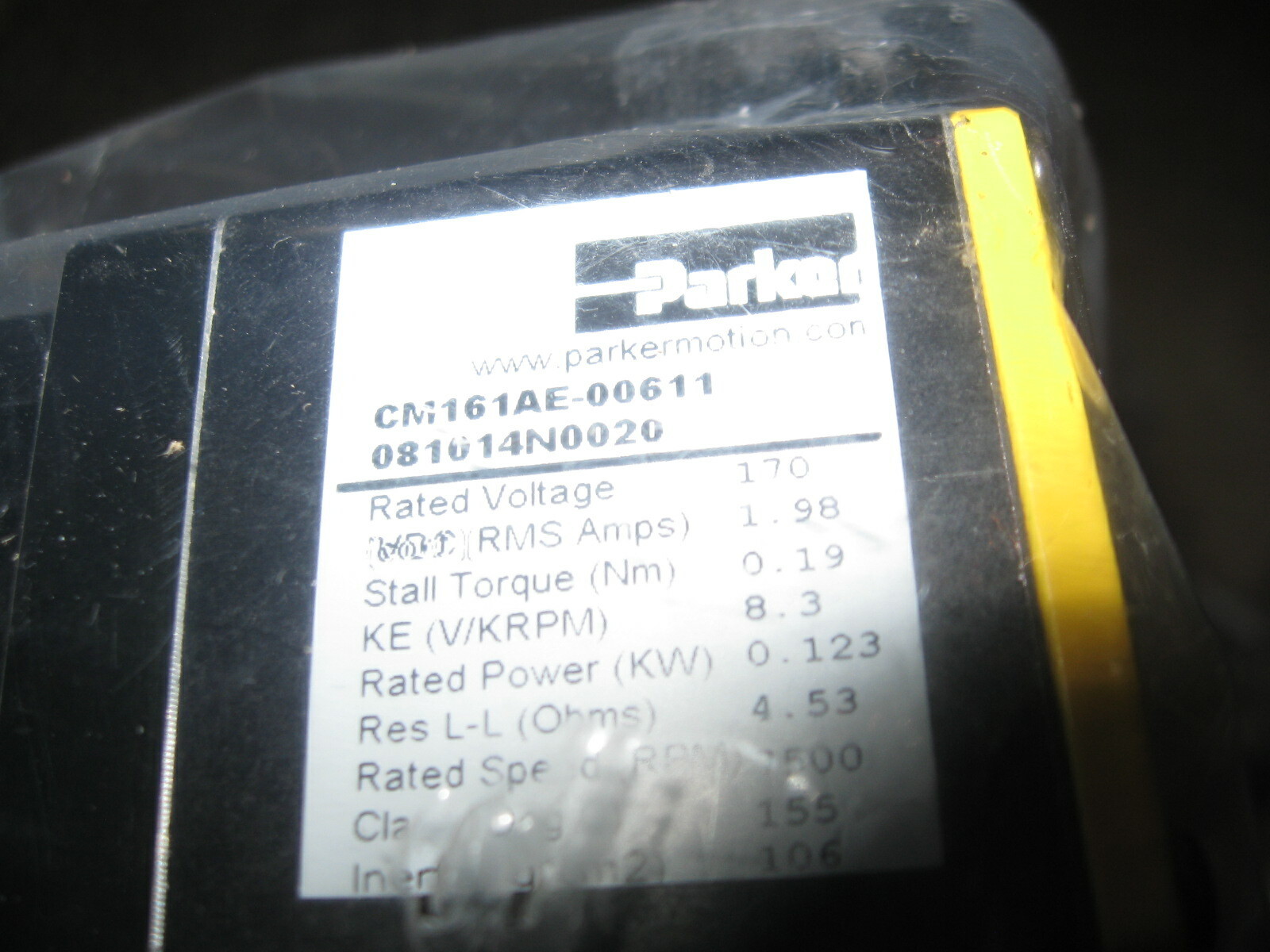 NEW Parker Compumotor Servo Motor w/ wiring / 170 V pn#- CM161AE-00611 This was acquired from a large company's surplus items, it did not fit their applications any longer. This comes from a working environment. Just buy this now!!!! NEW condition. 30 Day money back guarantee!!! We are not experts in the field, but will try and answer your questions. Will ship international. Please look at pictures. (DC Listing)