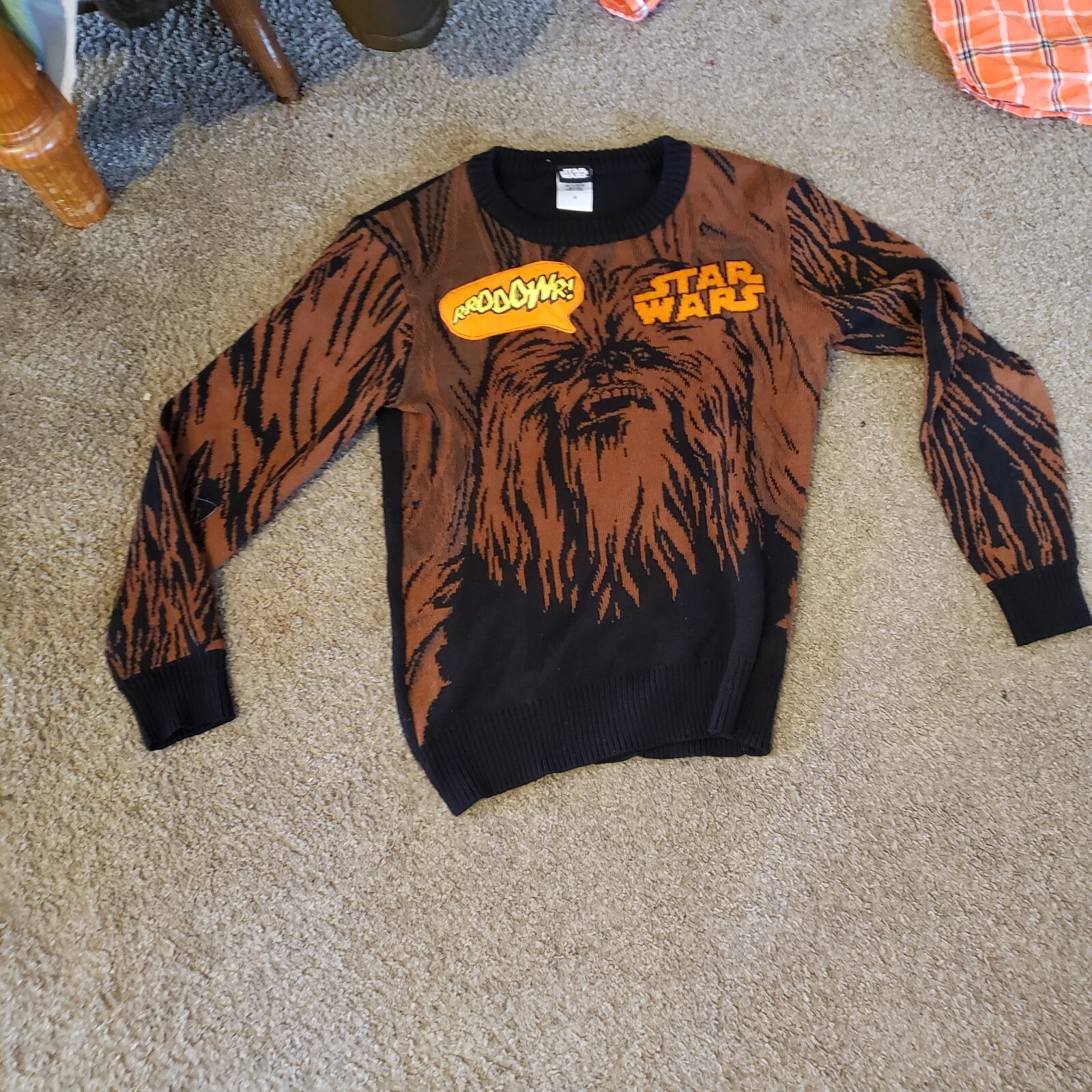 RARE Boys Star Wars Chewbacca Brown Black Sweater Rrooowr Cotton Sz- M 10-12 This is a a great sweatshirt. My boy only wore it a few times, before he got too big. This is labeled as boys 10-12 Please look at dimensions and you will see. Condition: Excellent dimensions: arm pit end of sleeve - 17-18 inches across chest (armpit to armpit) - 16-17 inches FREE SHIP - please check out my other youth clothes!!!!