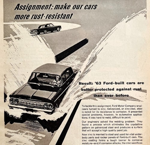 Ford Motor Company Rust Resistance Advertisement 1963 Automobilia Salt DWS6D