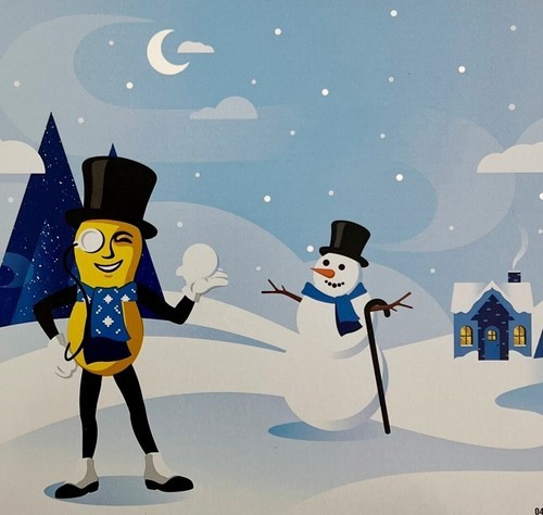Planter's Peanuts Christmas Tin Vintage Collectible Snowman Moon Limited E23