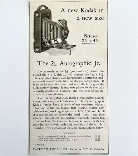 1916 Kodak 2c Autographic Junior Camera Advertisement Eastman DWMYC2