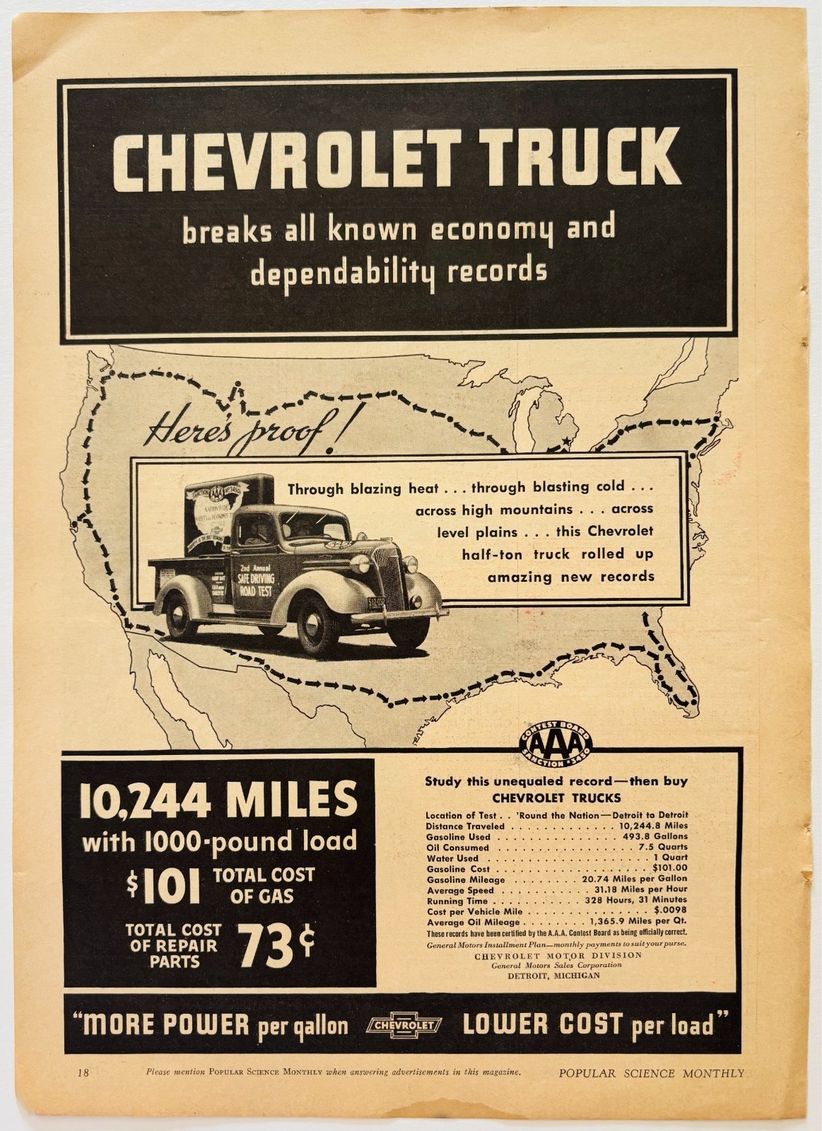 1937 Chevrolet Trucks Travel Records Advertisement Automobilia AAA Chevy E90F2