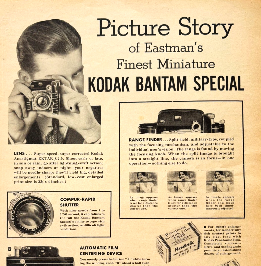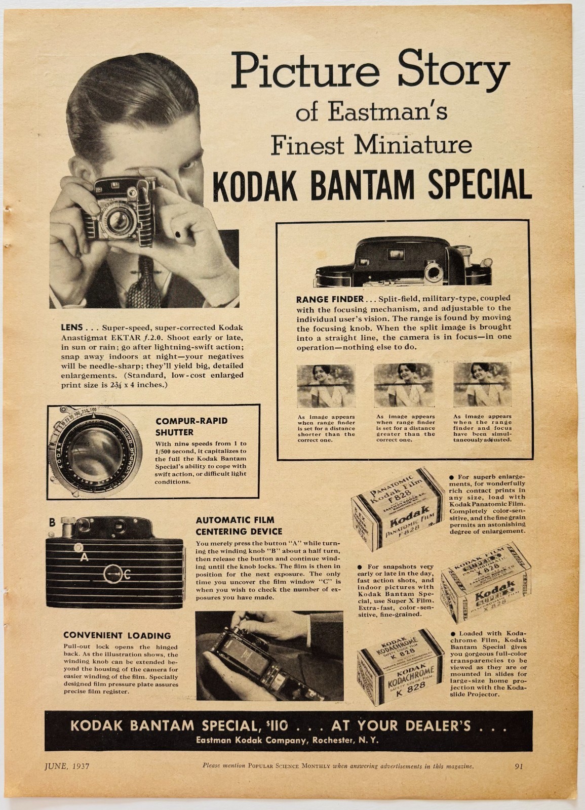 1937 Eastman Kodak Bantam Camera Advertisement Antique Photography E90F2
