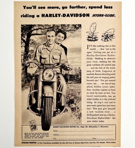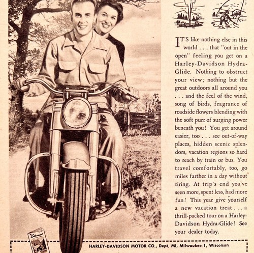 Harley Davidson Motorcycle Hydra Glide 1951 Advertisement Automobilia DWY1A