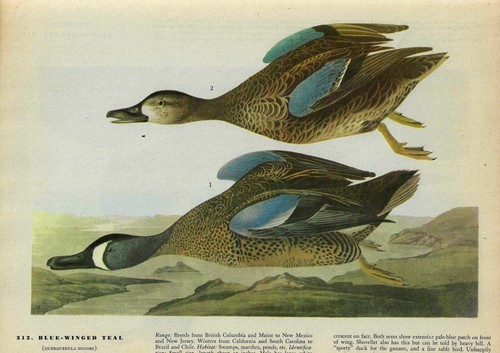 Blue Winged Teal Bird 1946 Color Plate Print John James Audubon Nature DWV2A