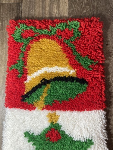 Completed Latch Hook Rug Wall Hanging Christmas Holiday Santa Bell Tree