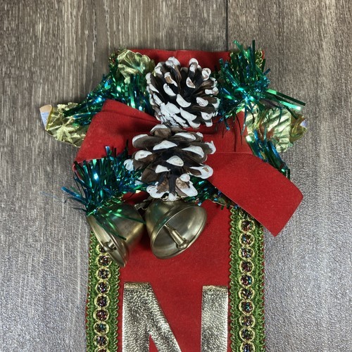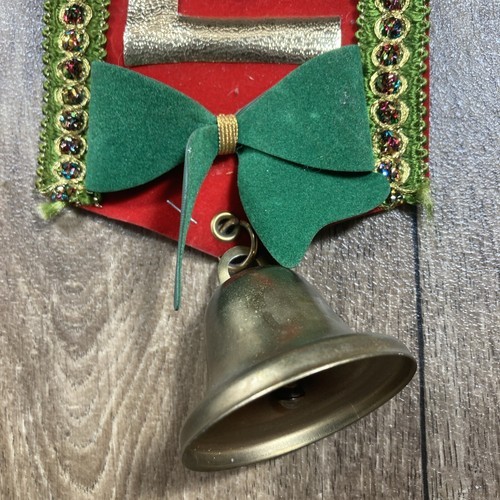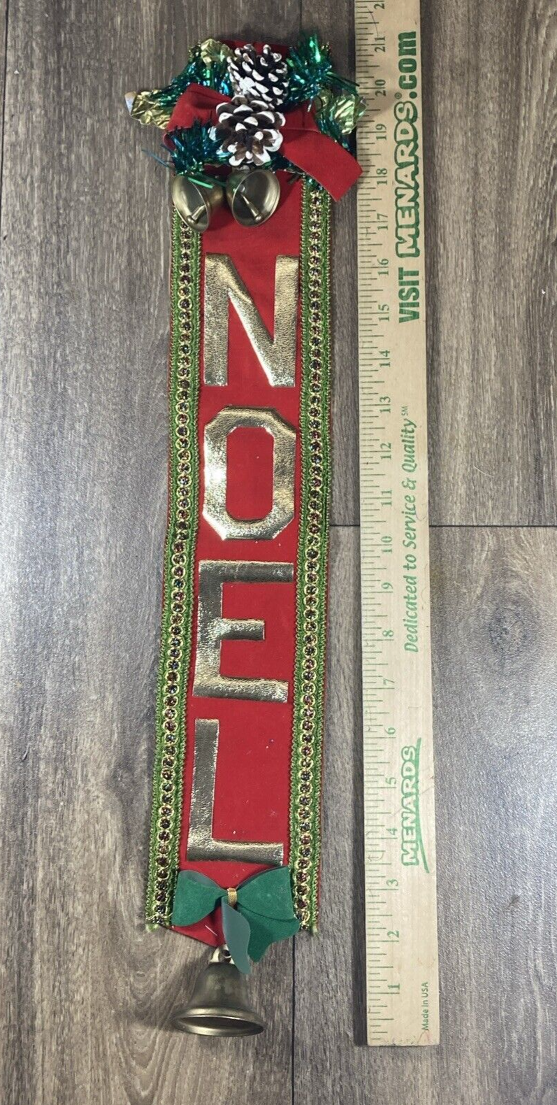 Vintage Christmas Holiday Felt Noel Door Wall Hanging w Bells
