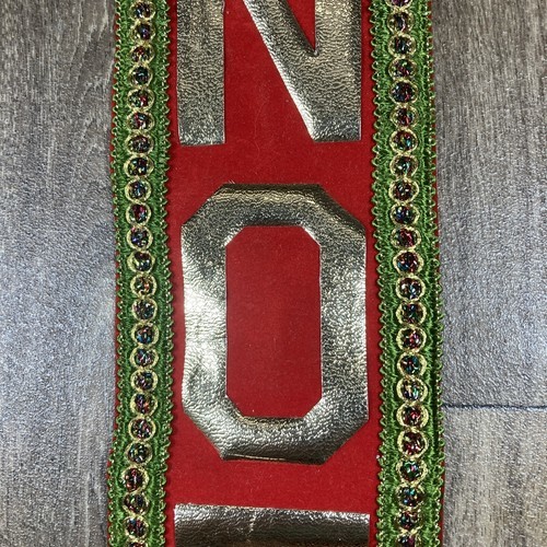 Add a vintage touch to your Christmas decor with this beautiful red felt Noel door wall hanging. The piece features a charming design with bells attached, making it a perfect addition to any holiday collection. Made of high-quality felt material, this collectible is durable and long-lasting. Hang it on your wall or door for an added touch of festive cheer.