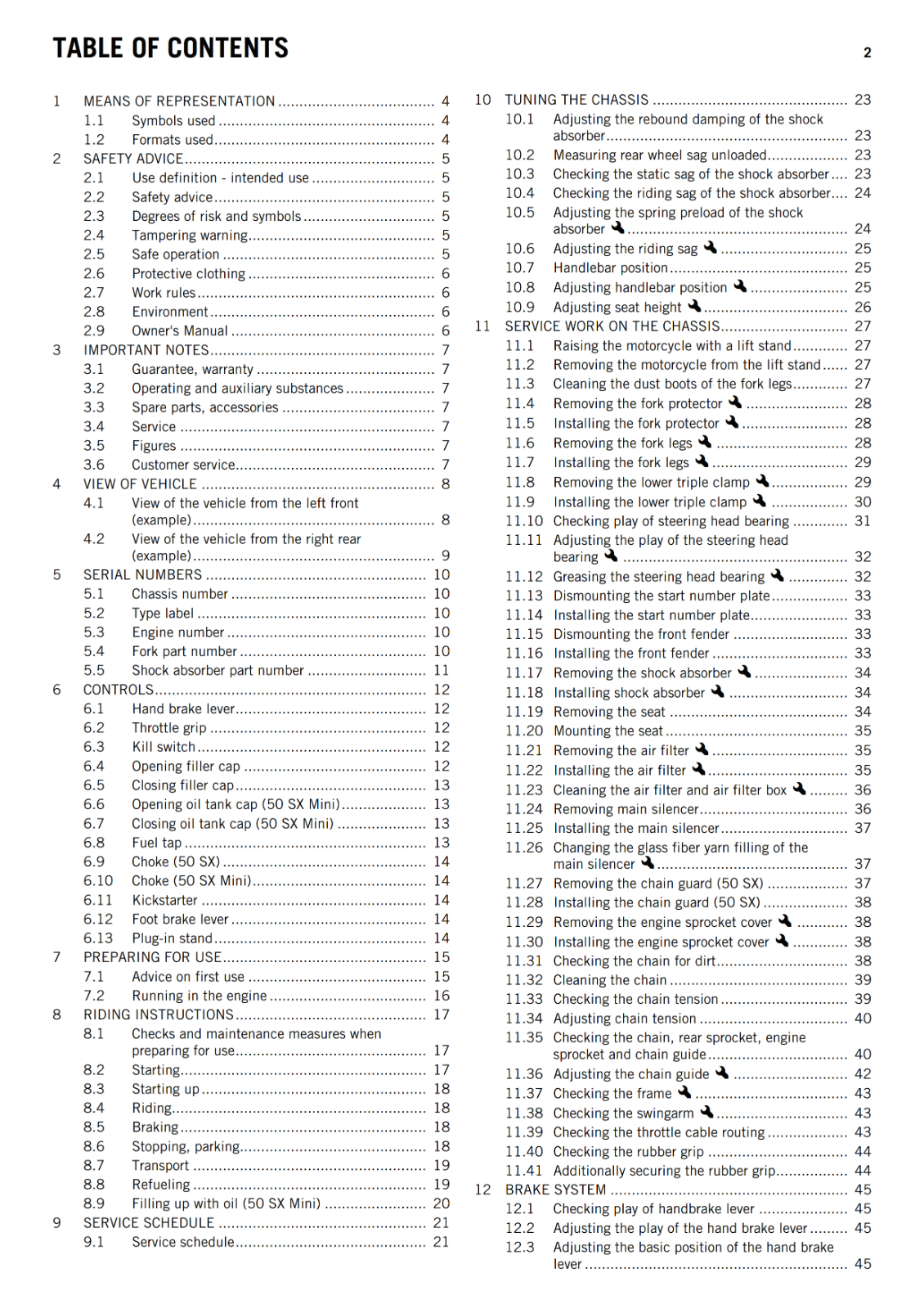 KTM 2014 - 50 SX MINI - OWNERS MANUAL USER GUIDE