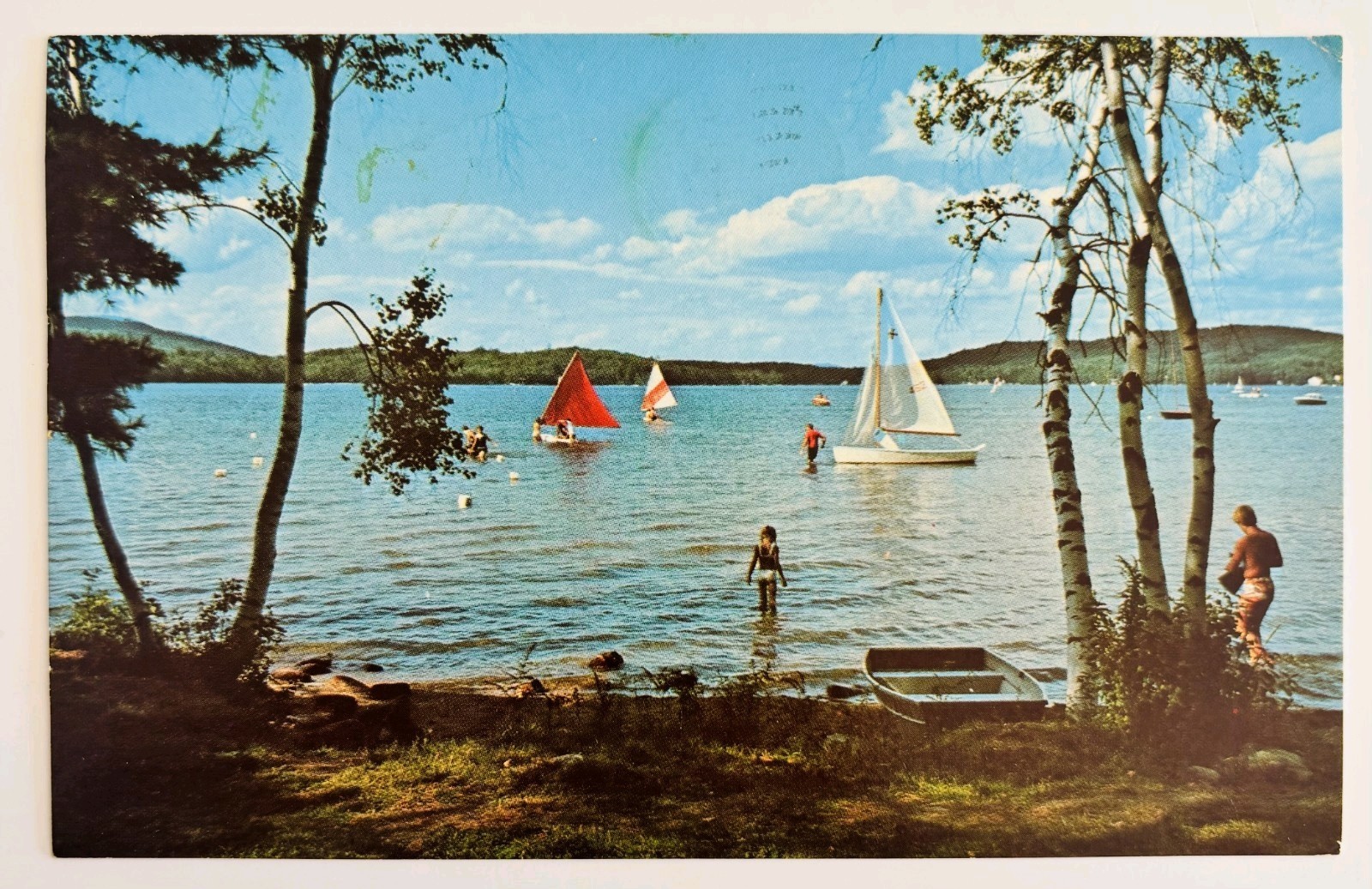 1975 Postcard Spofford Lake New Hampshire Sailboats Landscape Vintage CHXE