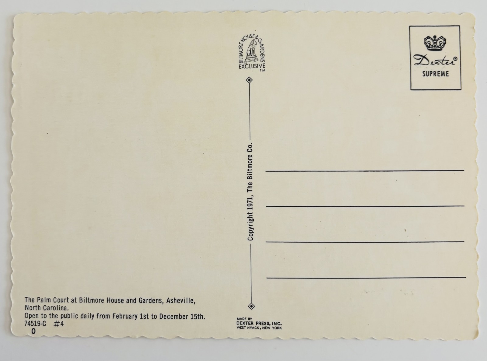 1971 Postcard Biltmore House And Gardens Asheville North Carolina Vintage E2A