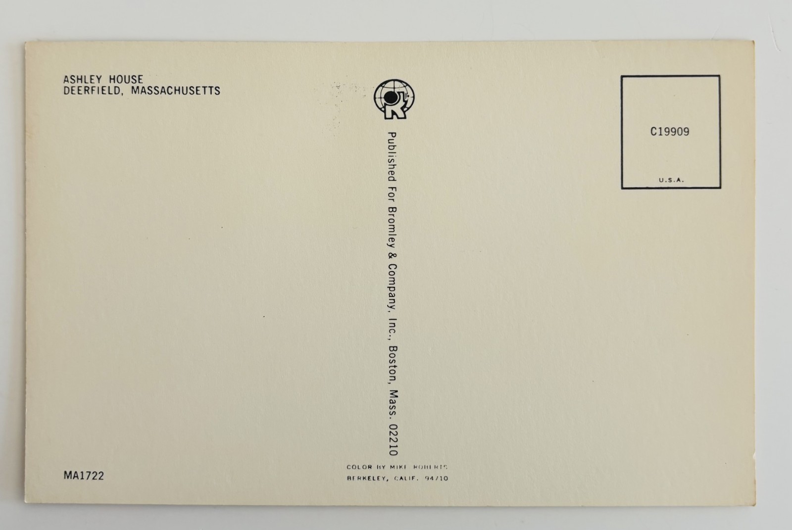 1970s Postcard Historic Ashley House Deerfield Massachusetts Vintage CHXE