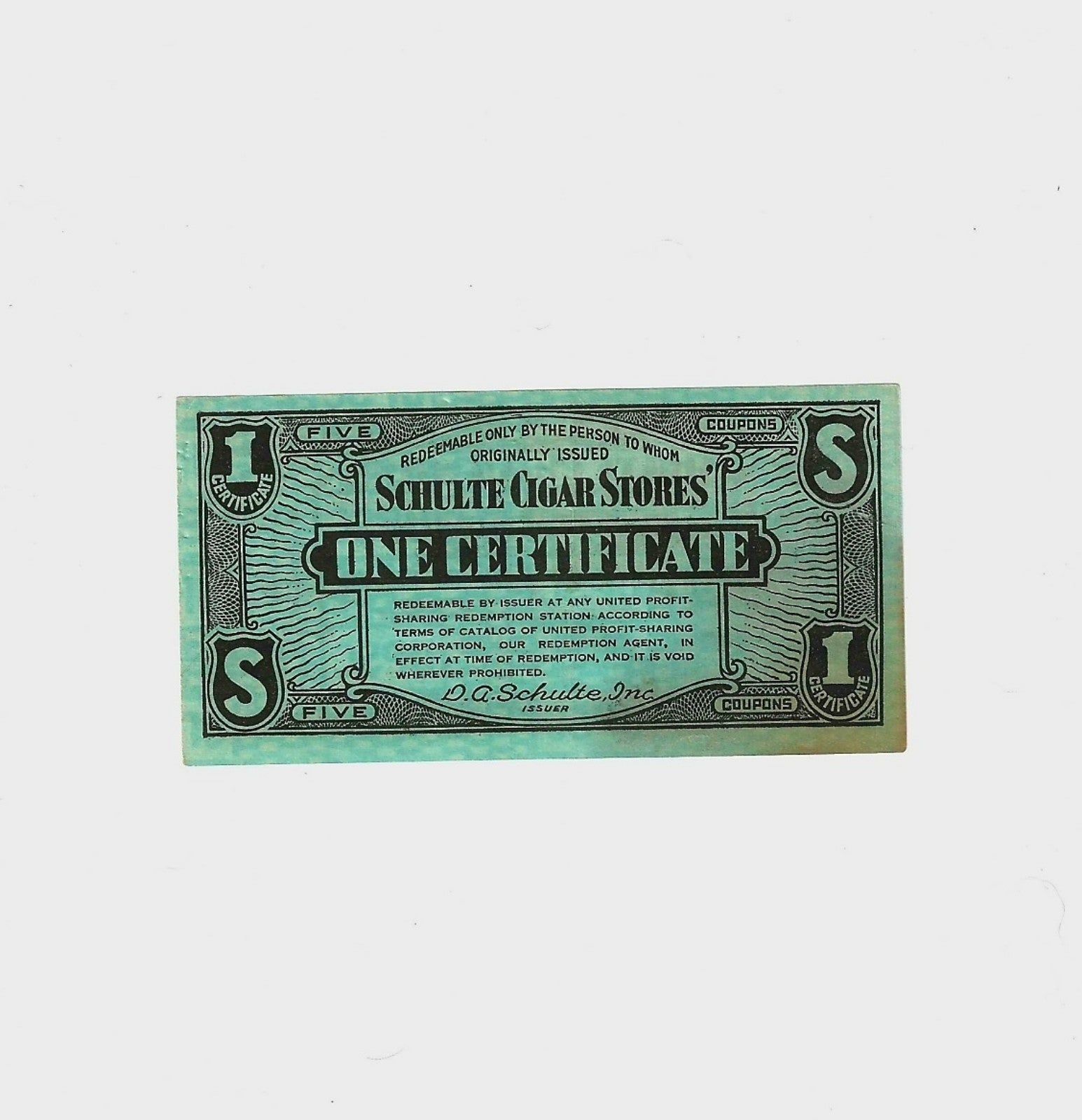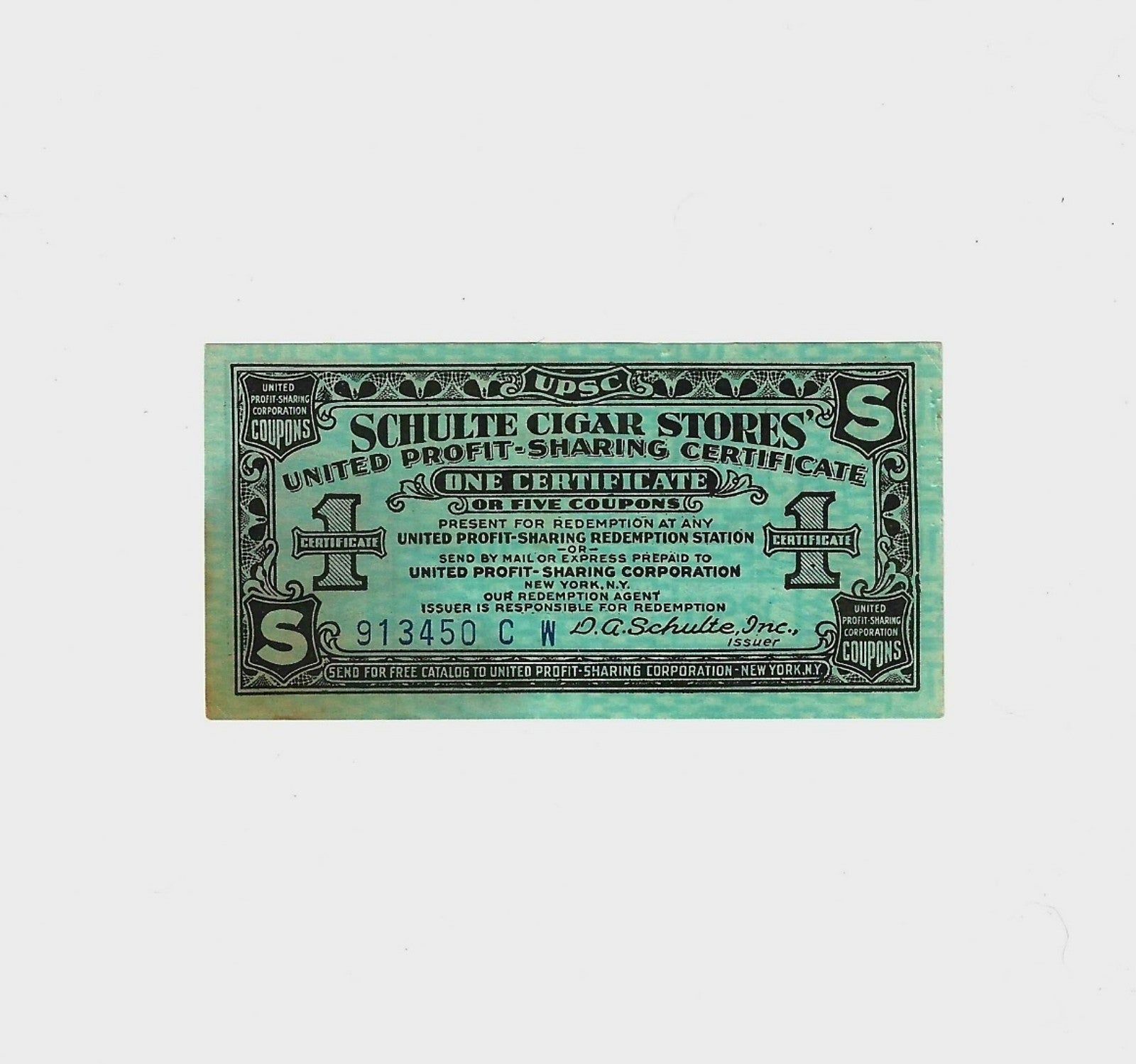 Schulte Cigar Stores' Vintage One Certificate #914450 CW Profit Sharing